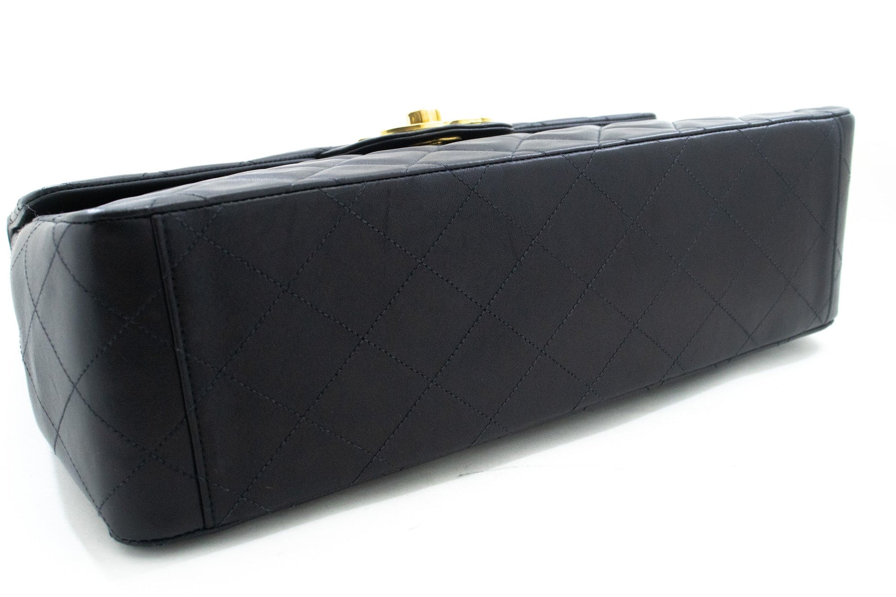 An CHANEL Classic Large 13" New Chain Shoulder Bag Black made of black Lambskin.