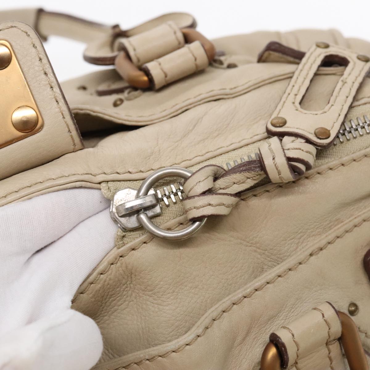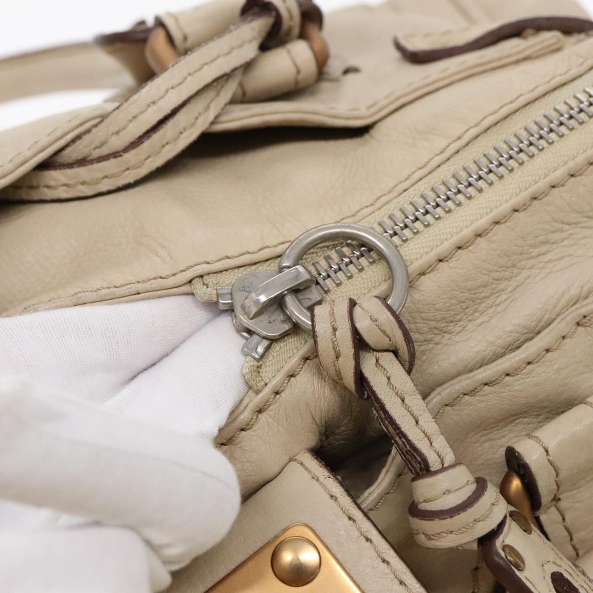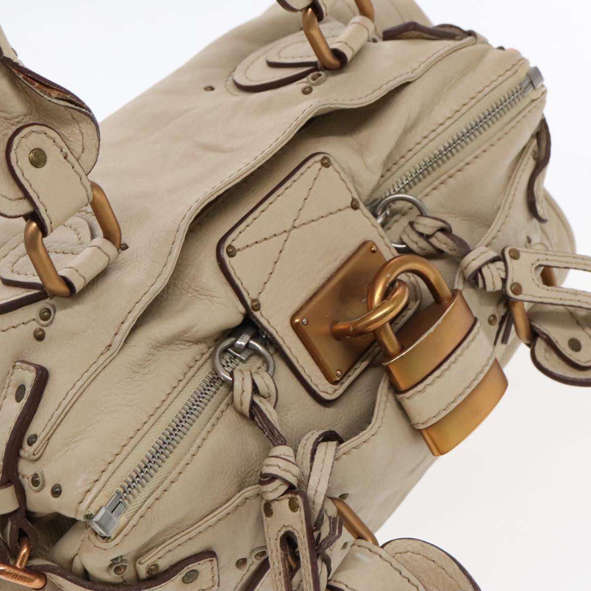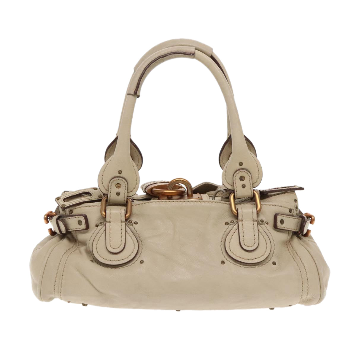 Chloe Paddington Hand Bag Leather Beige Gold Silver am7044