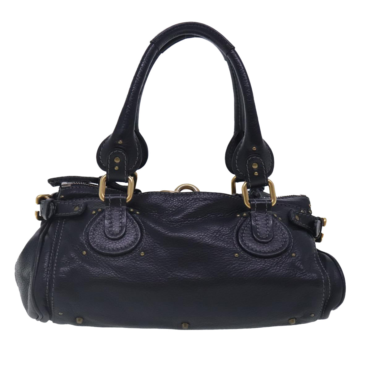 Chloe Paddington Hand Bag Leather Black Gold Silver am7037