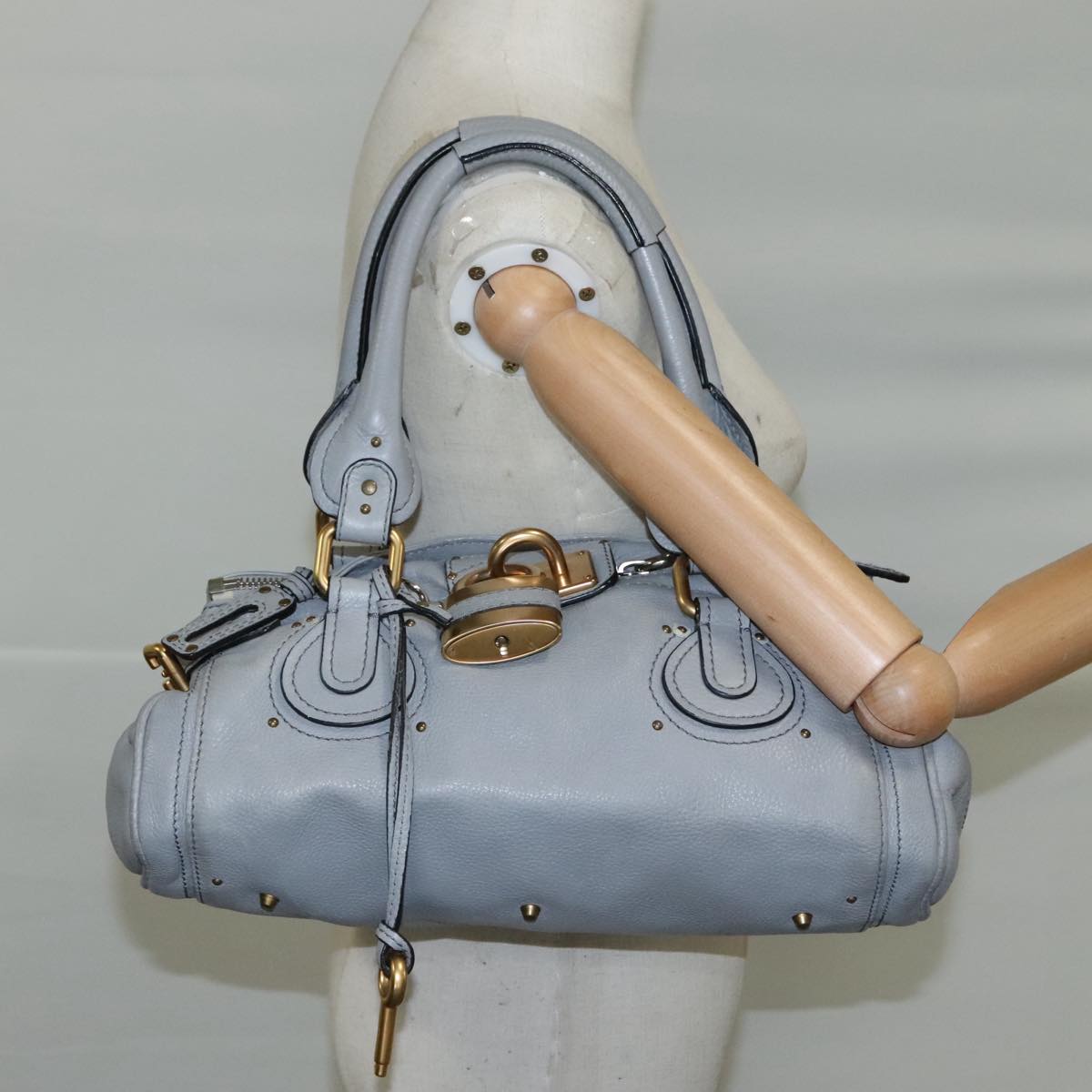 Chloe Paddington Hand Bag Leather Gray Gold Silver am7475