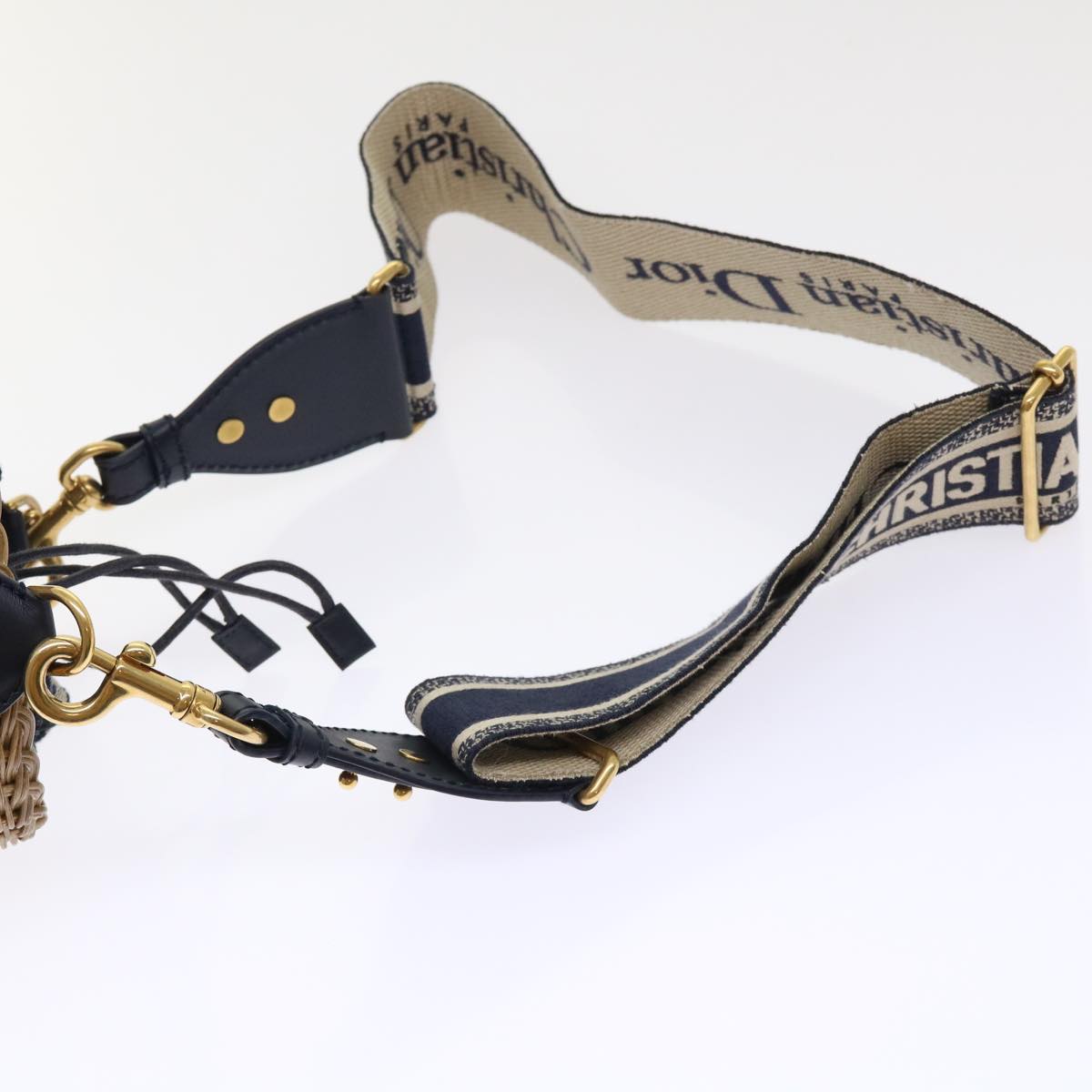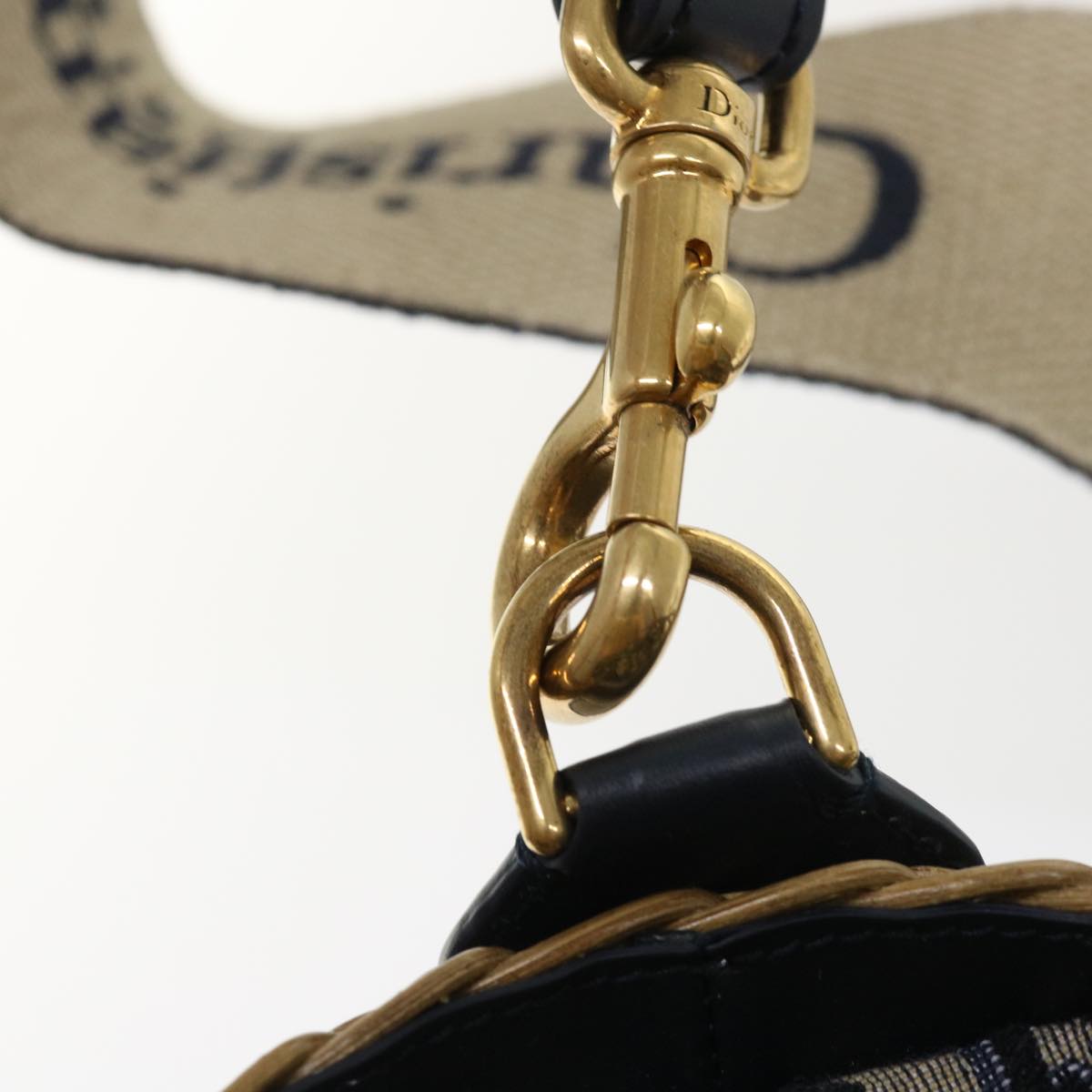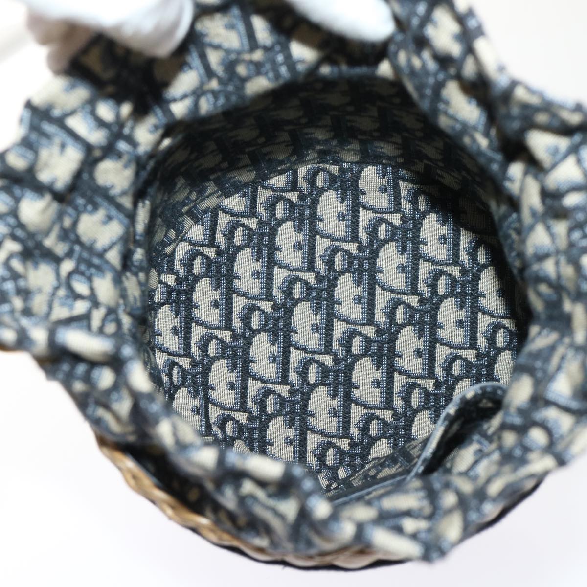 CHRISTIAN DIOR Basket Bag Trotter Canvas Shoulder Bag Rattan Blue Auth 51270A