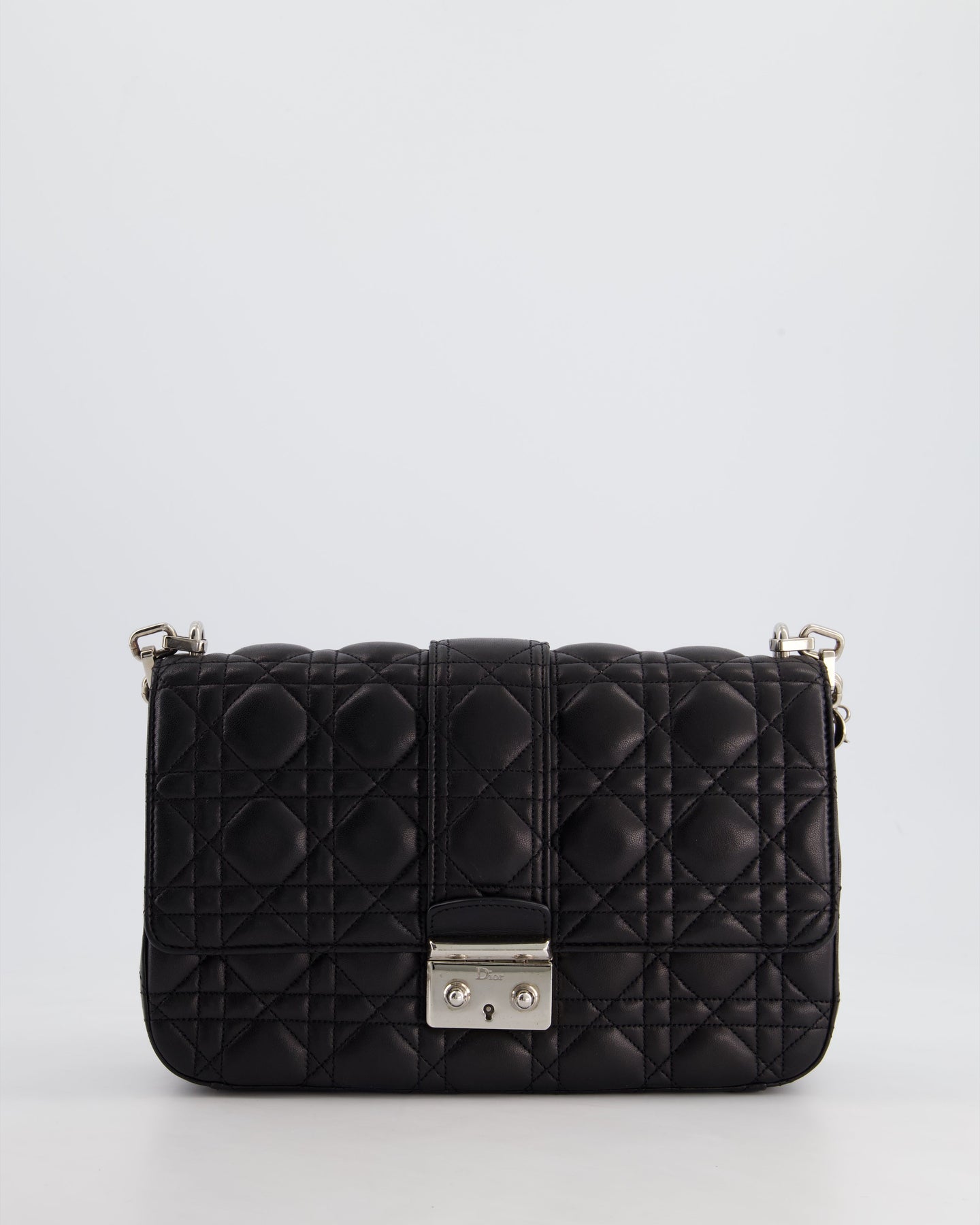 Christian Dior Black Cannage Miss Dior Leather Bag With Silver Hardware