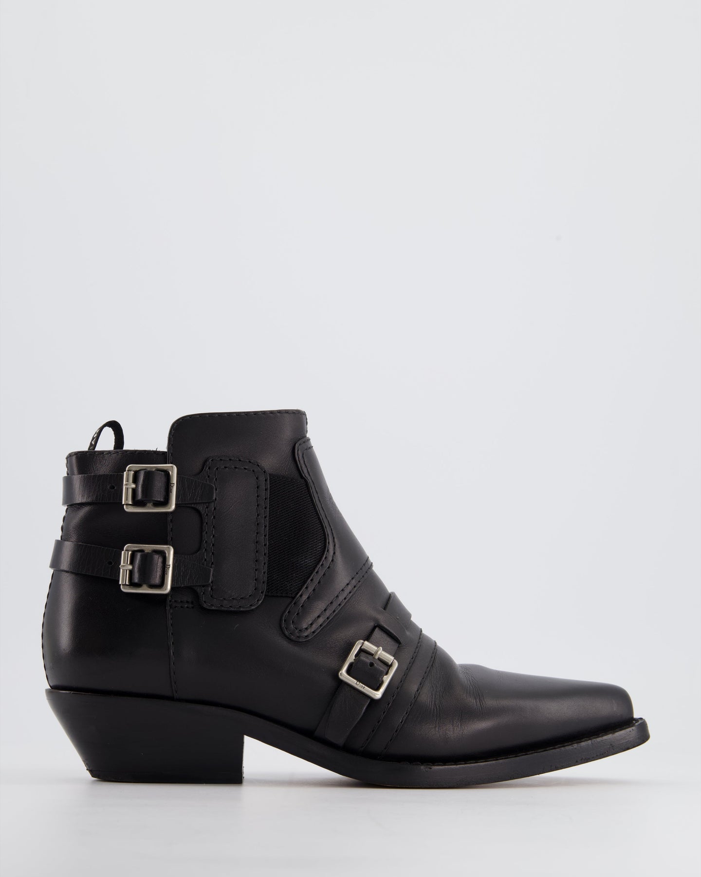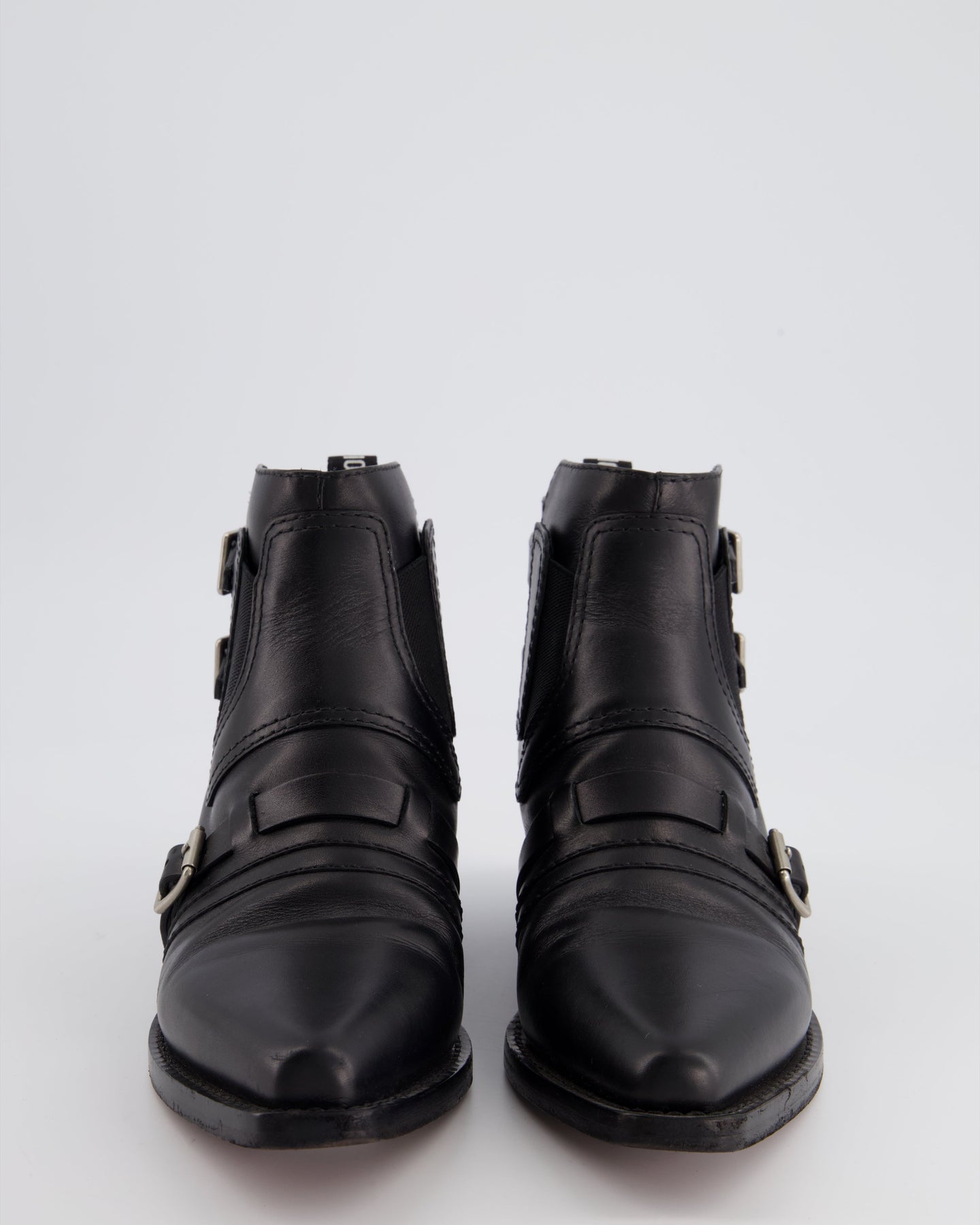 Christian Dior Black Leather Ankle Saddle Boots with Silver Buckle Size EU 37.5