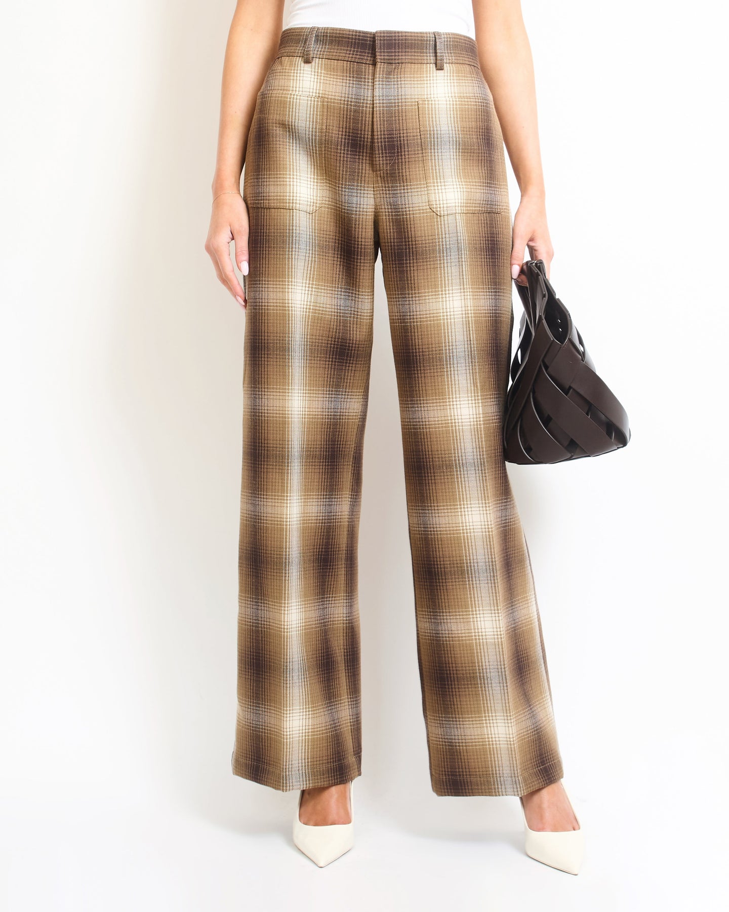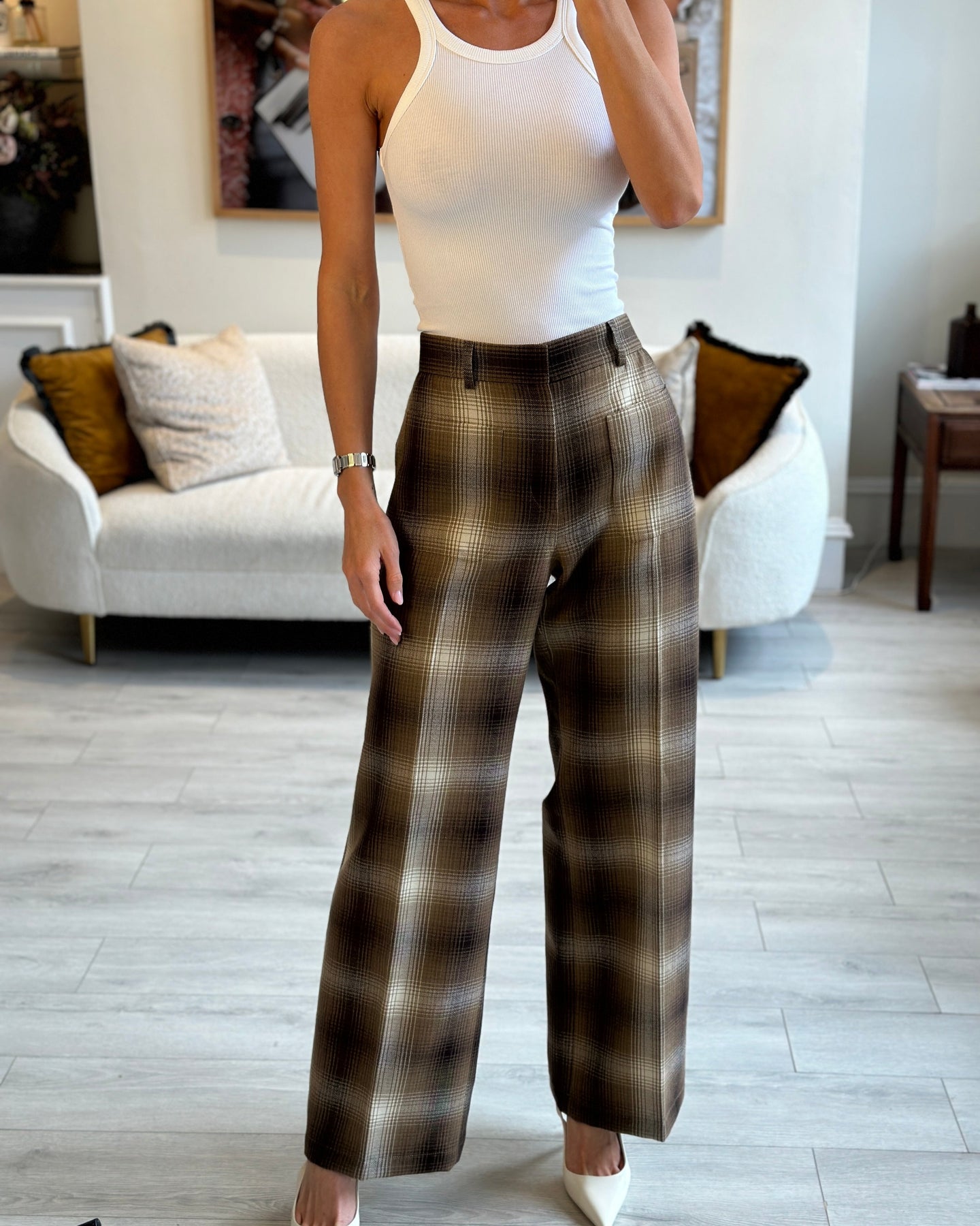 Christian Top quality Dior Brown Tartan Print Flared Trousers FR 38 UK 10)