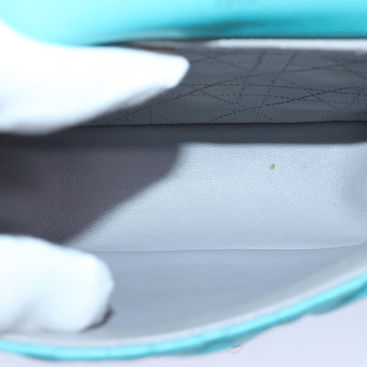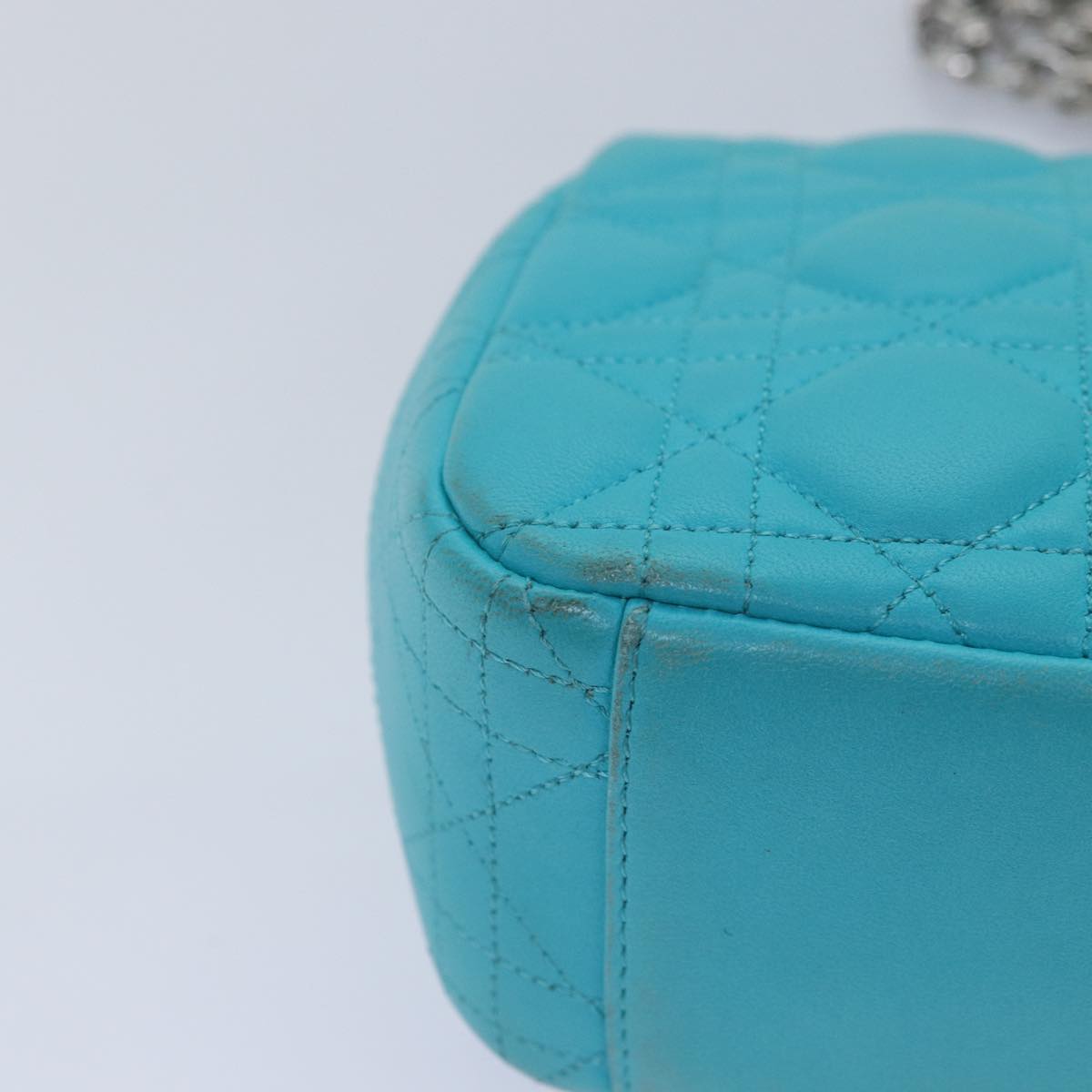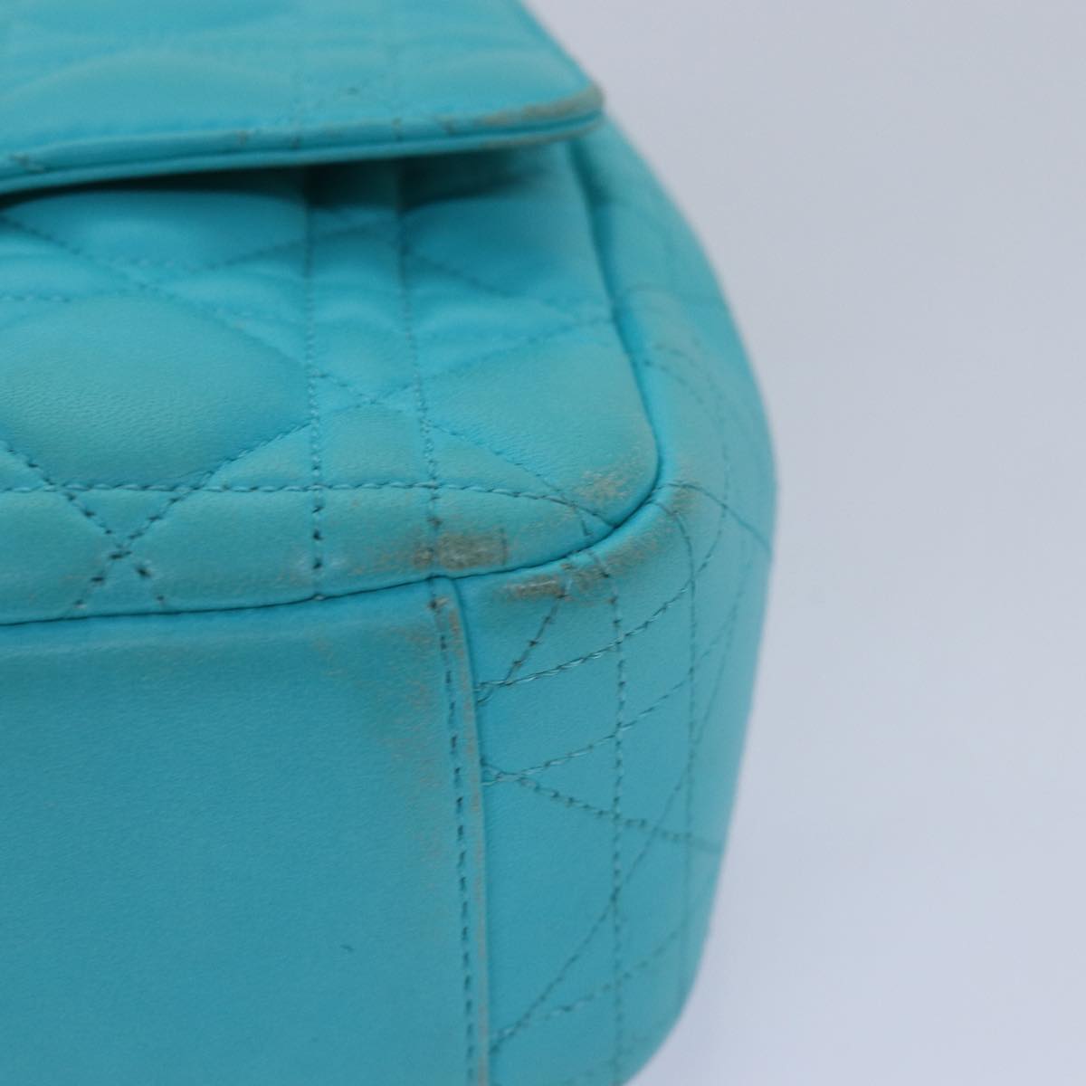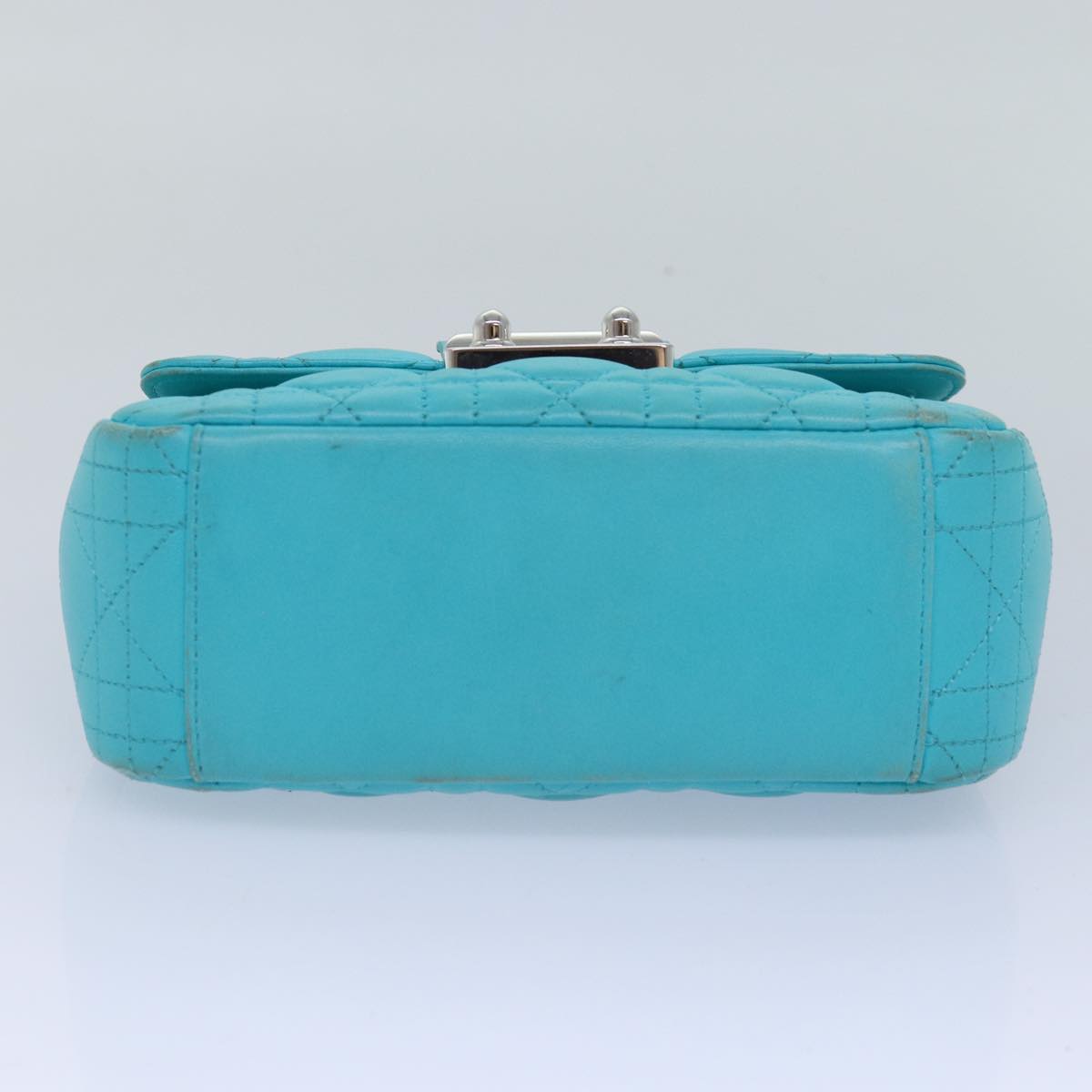 CHRISTIAN Top quality Dior Chain Canage Shoulder Bag Leather Blue Auth 82743