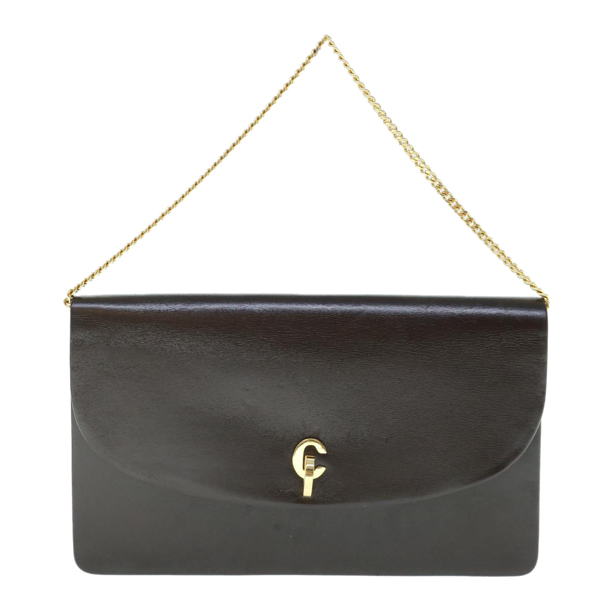 CHRISTIAN DIOR Chain Shoulder Bag Leather Brown Auth bs11131