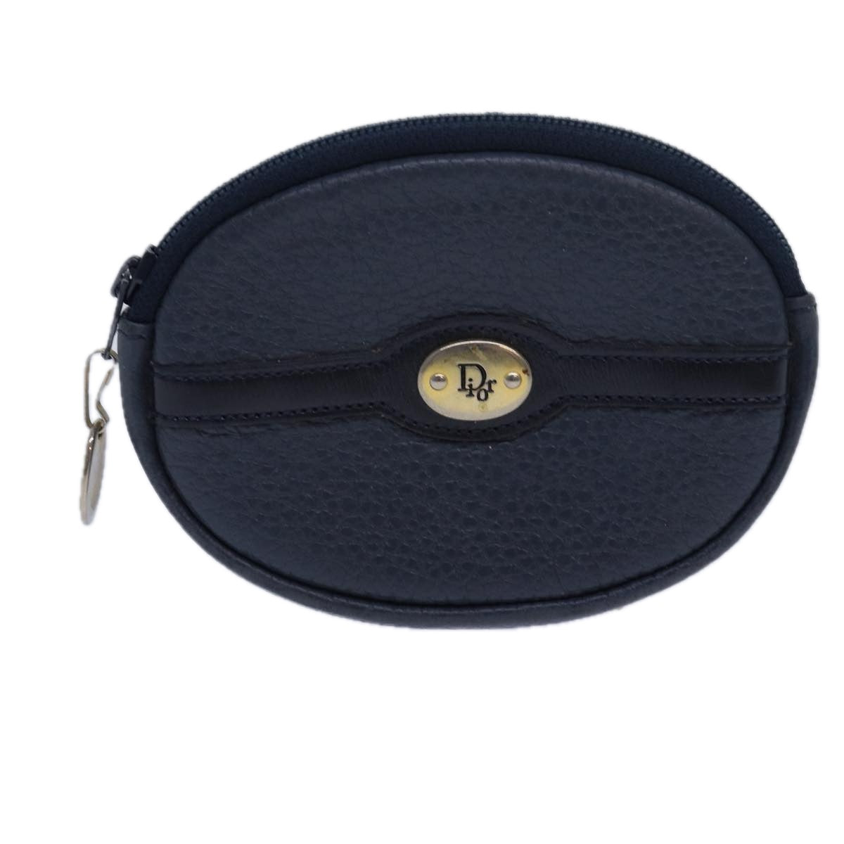 CHRISTIAN DIOR Coin Purse Leather Navy Auth bs15647