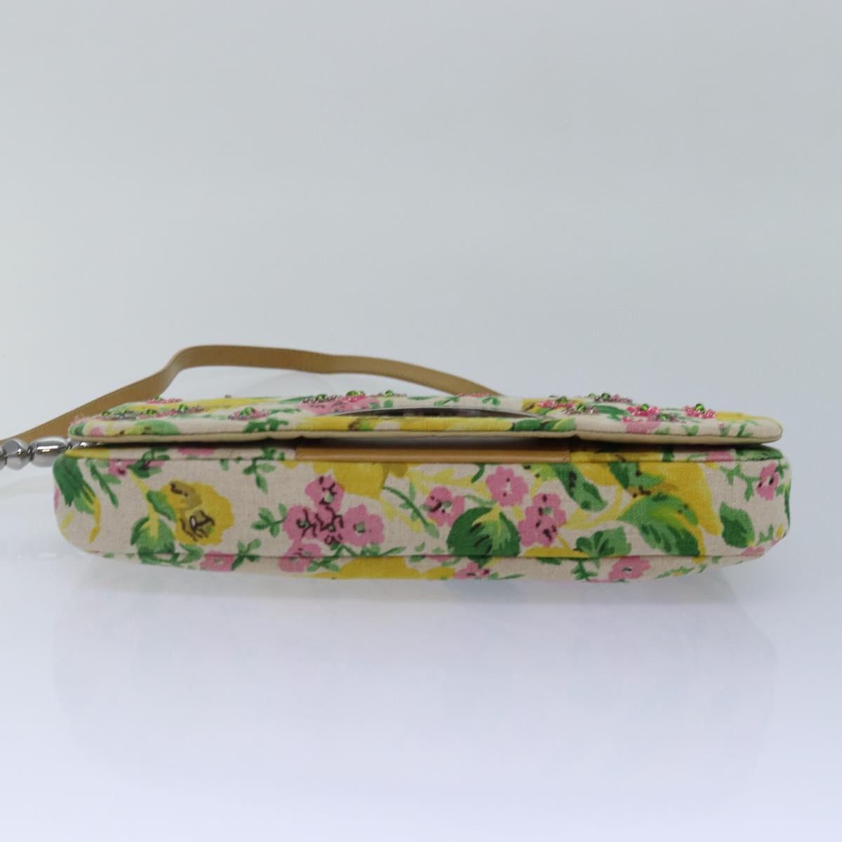 CHRISTIAN DIOR Flower Shoulder Bag Canvas Beige Yellow Auth 87650