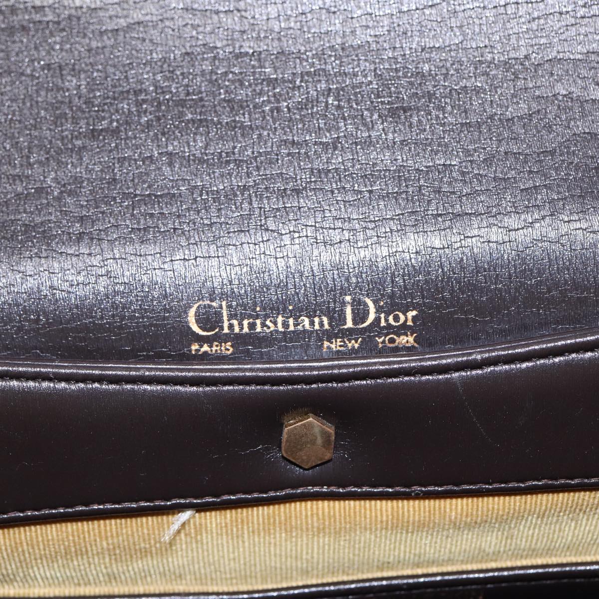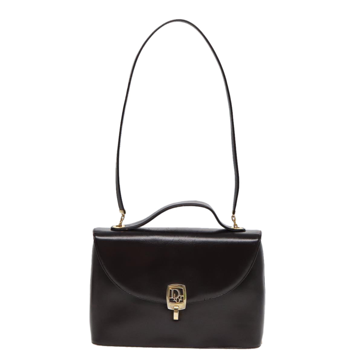 CHRISTIAN DIOR Hand Bag Leather 2way Brown Gold Auth yk14414