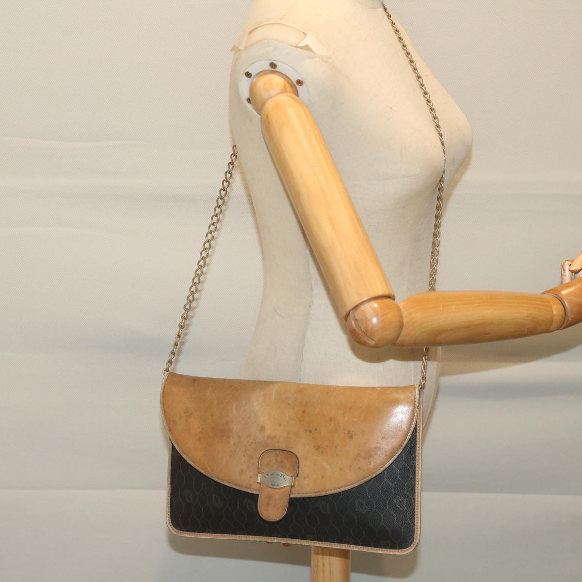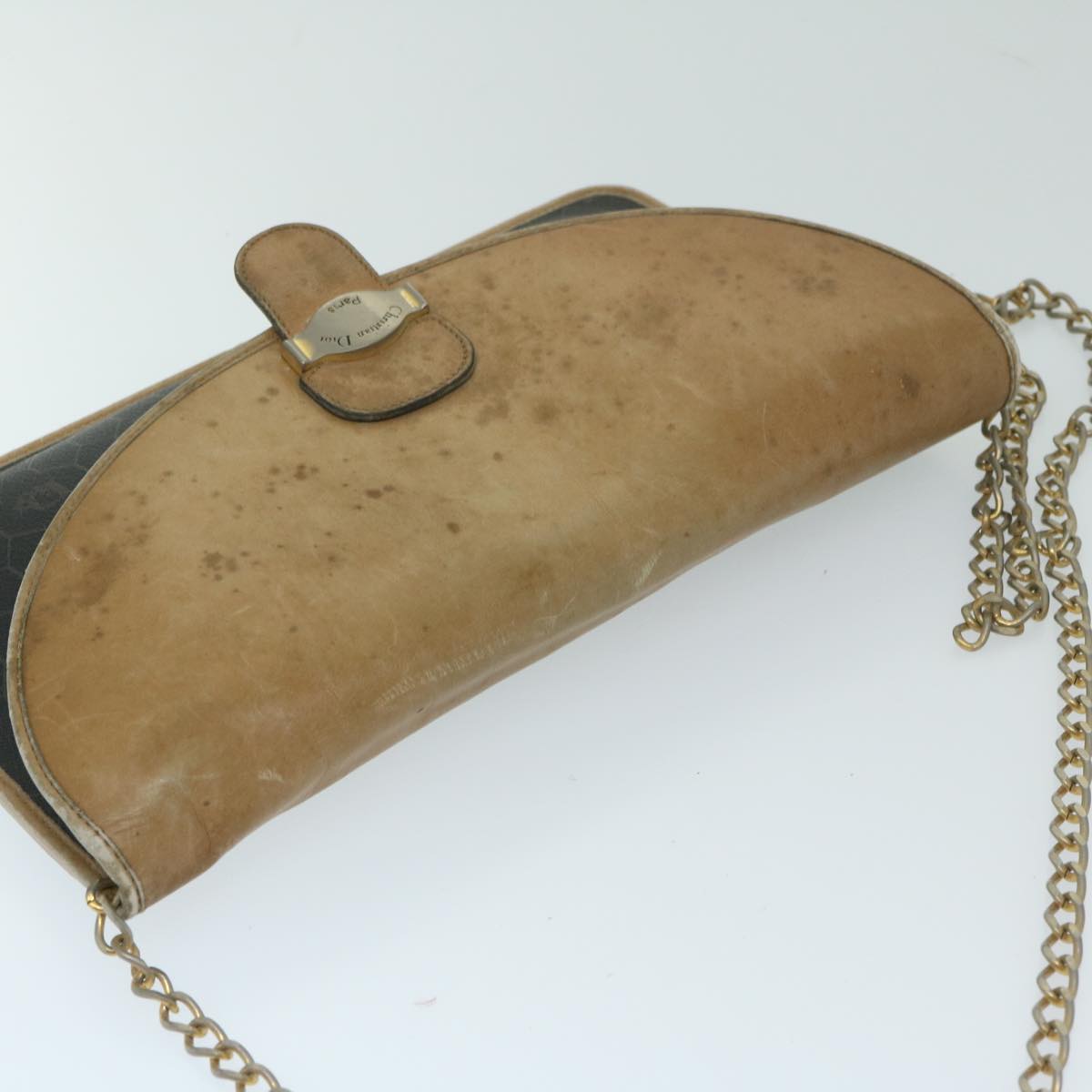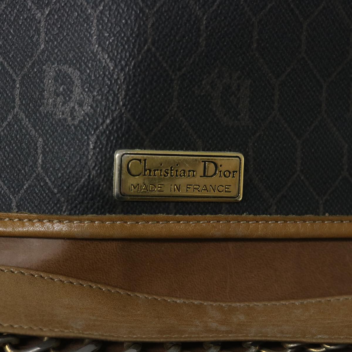 CHRISTIAN DIOR Honeycomb Canvas Chain Shoulder Bag PVC Black Auth bs12883