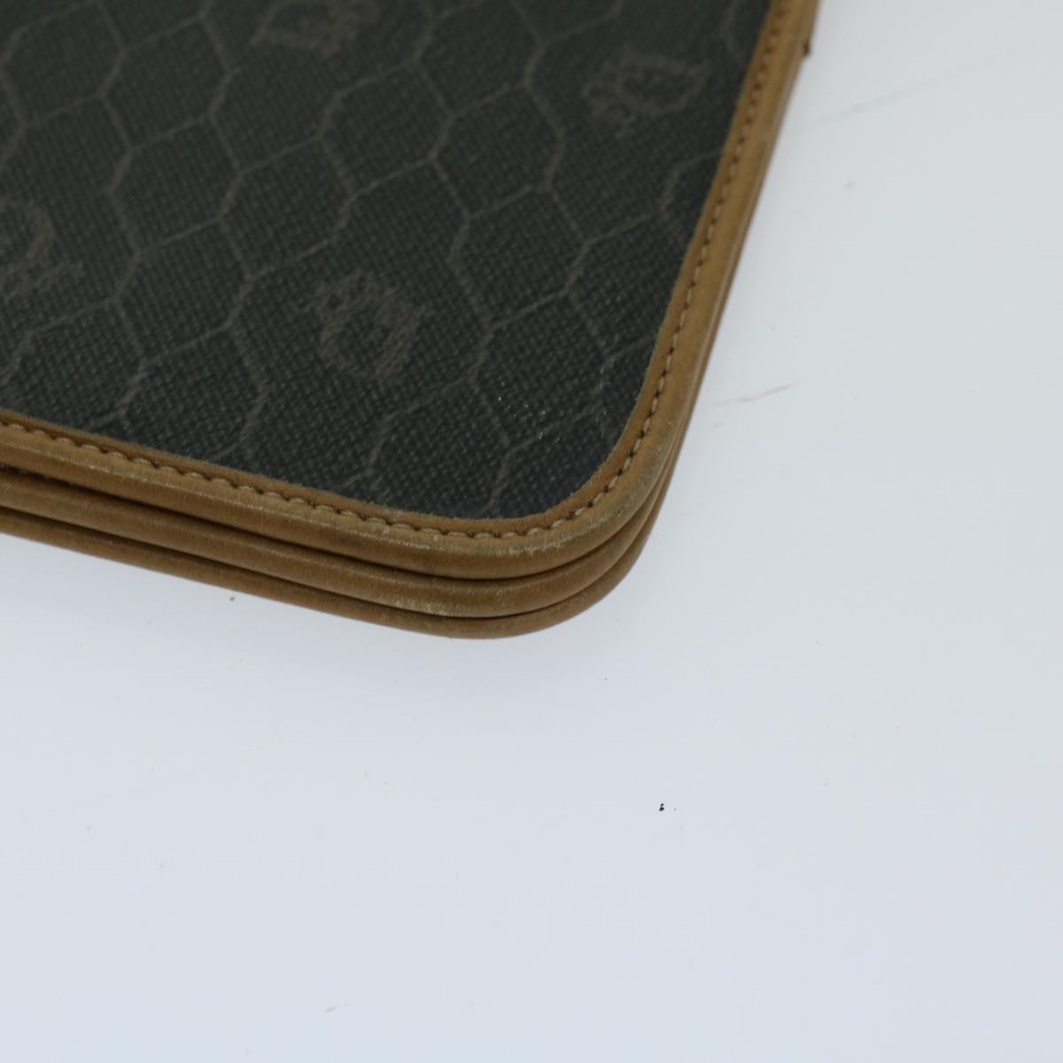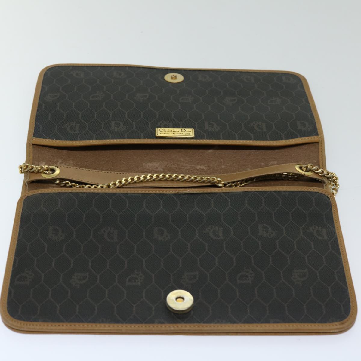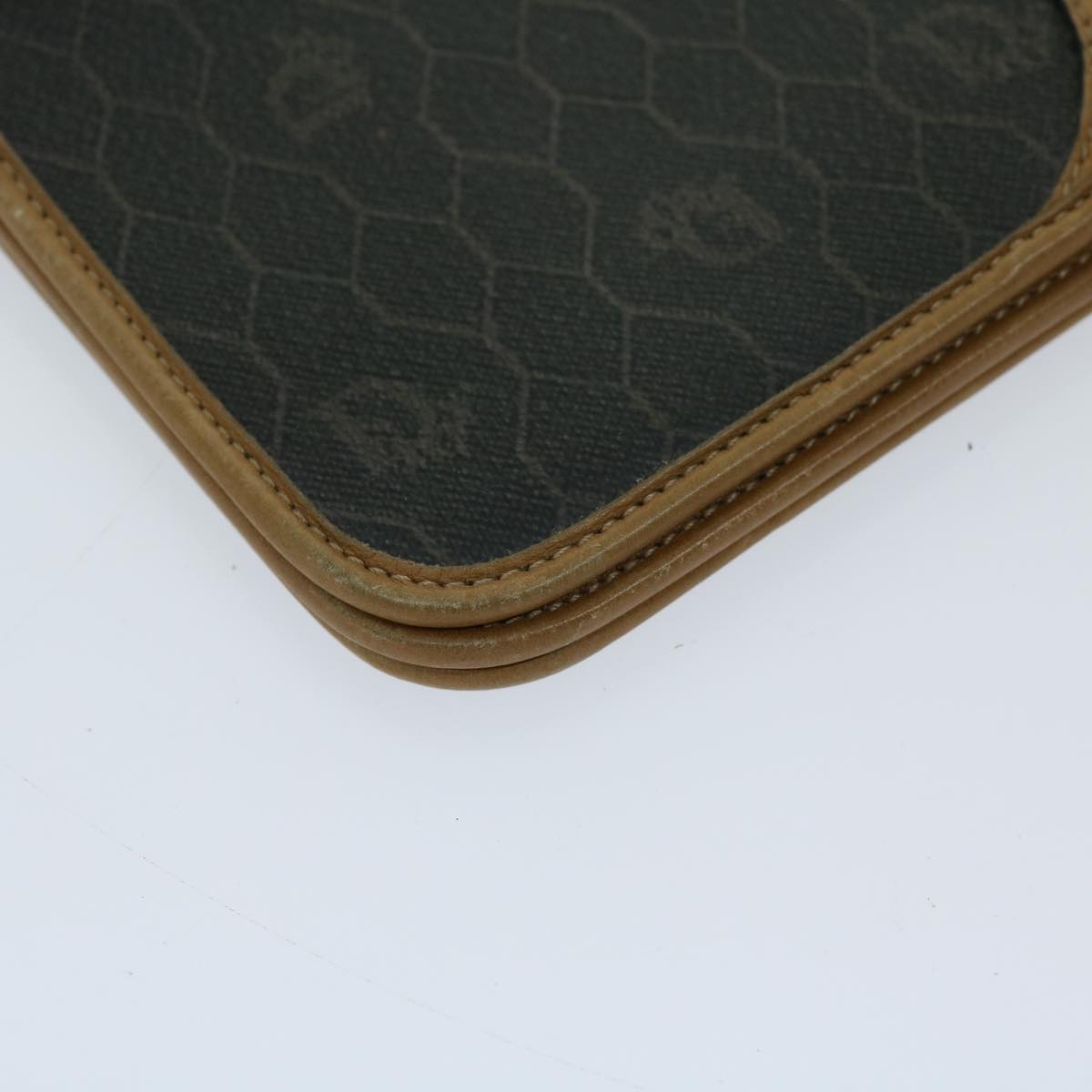 CHRISTIAN DIOR Honeycomb Canvas Chain Shoulder Bag PVC Black Auth ti1598