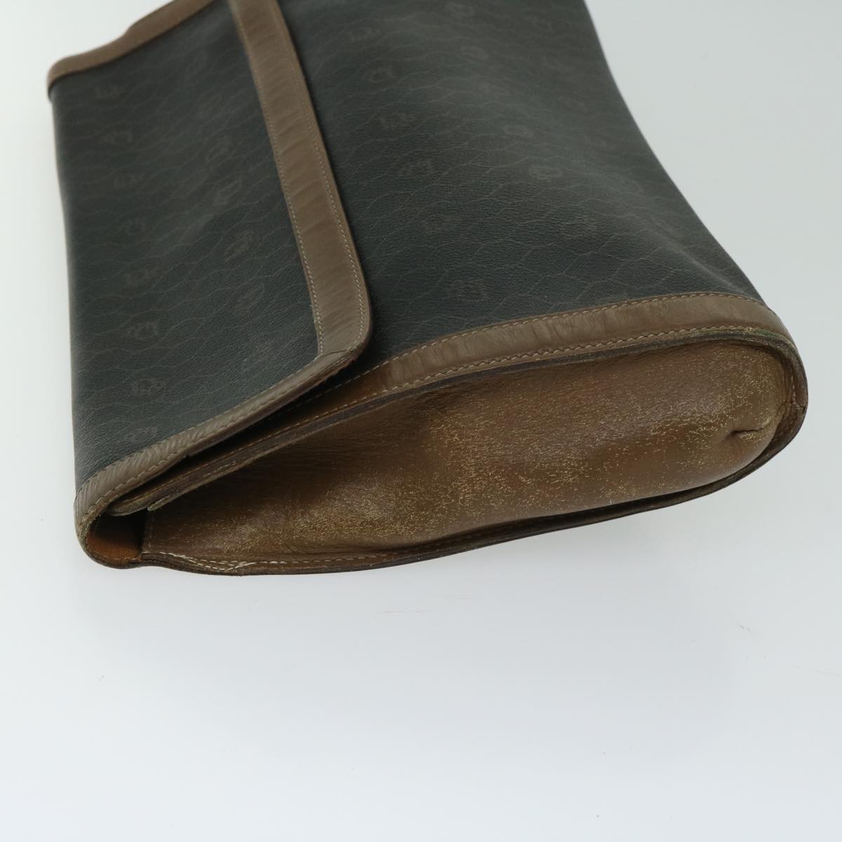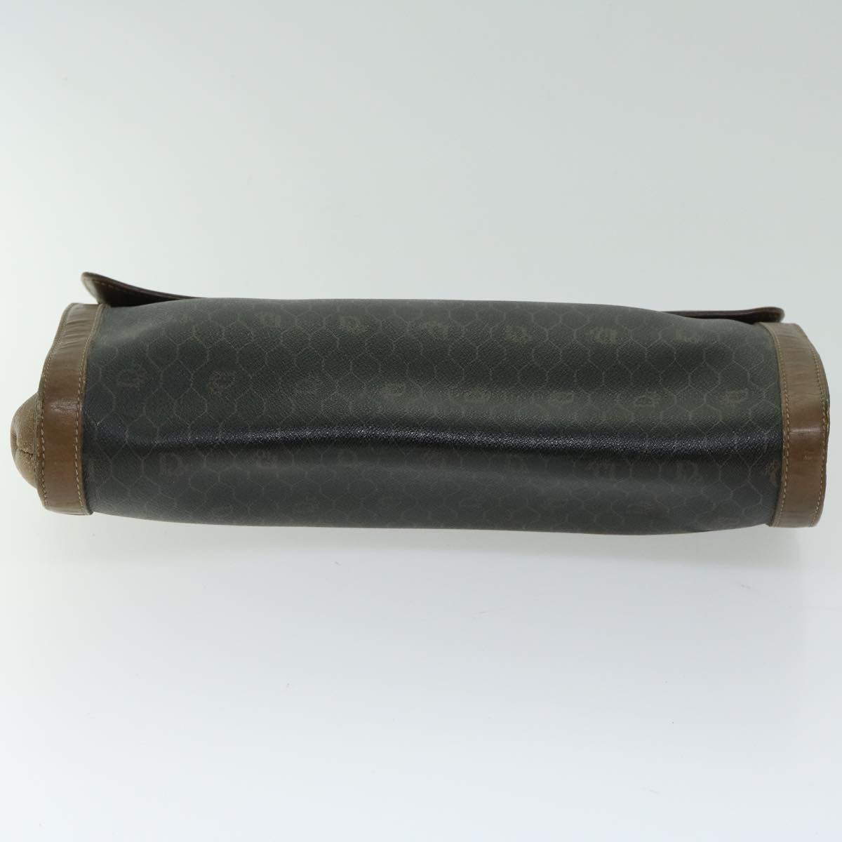 CHRISTIAN DIOR Honeycomb Canvas Clutch Bag PVC Leather Black Auth bs12112