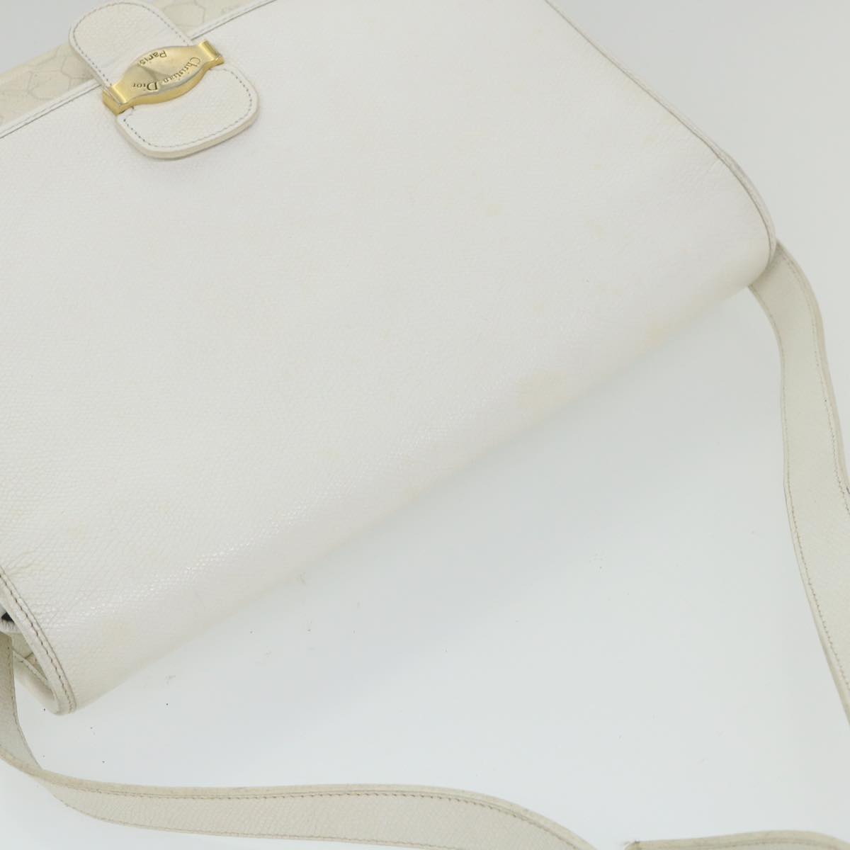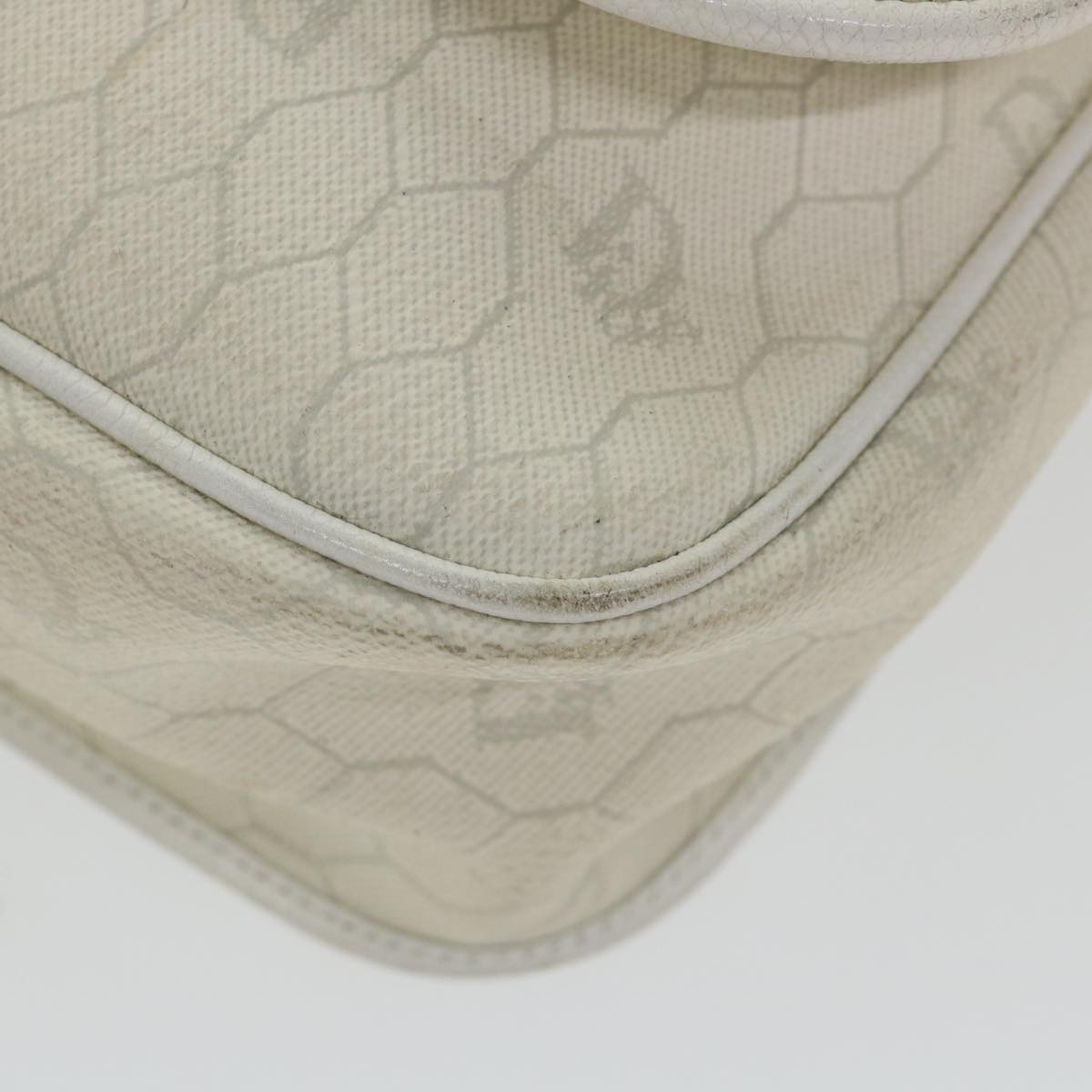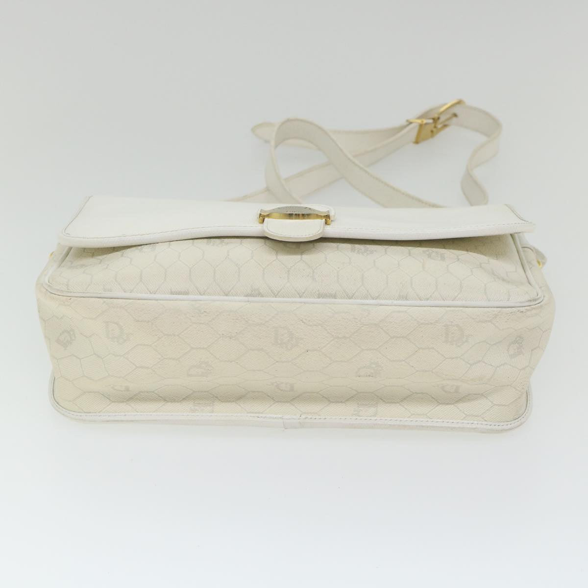 CHRISTIAN DIOR Honeycomb Canvas Shoulder Bag Leather White Auth bs9992
