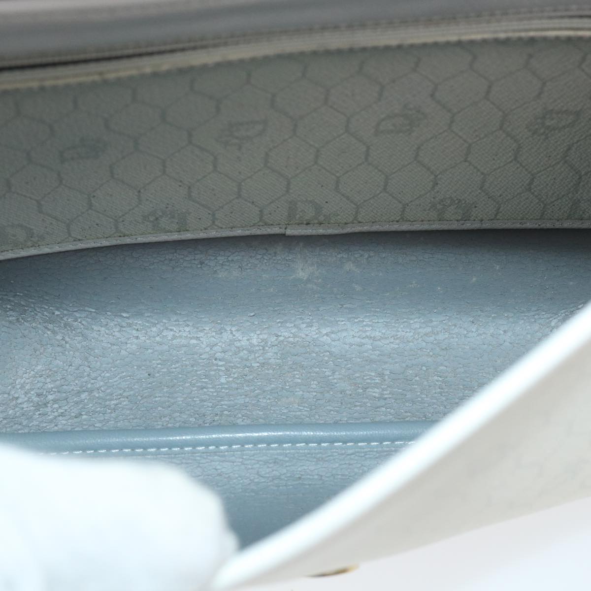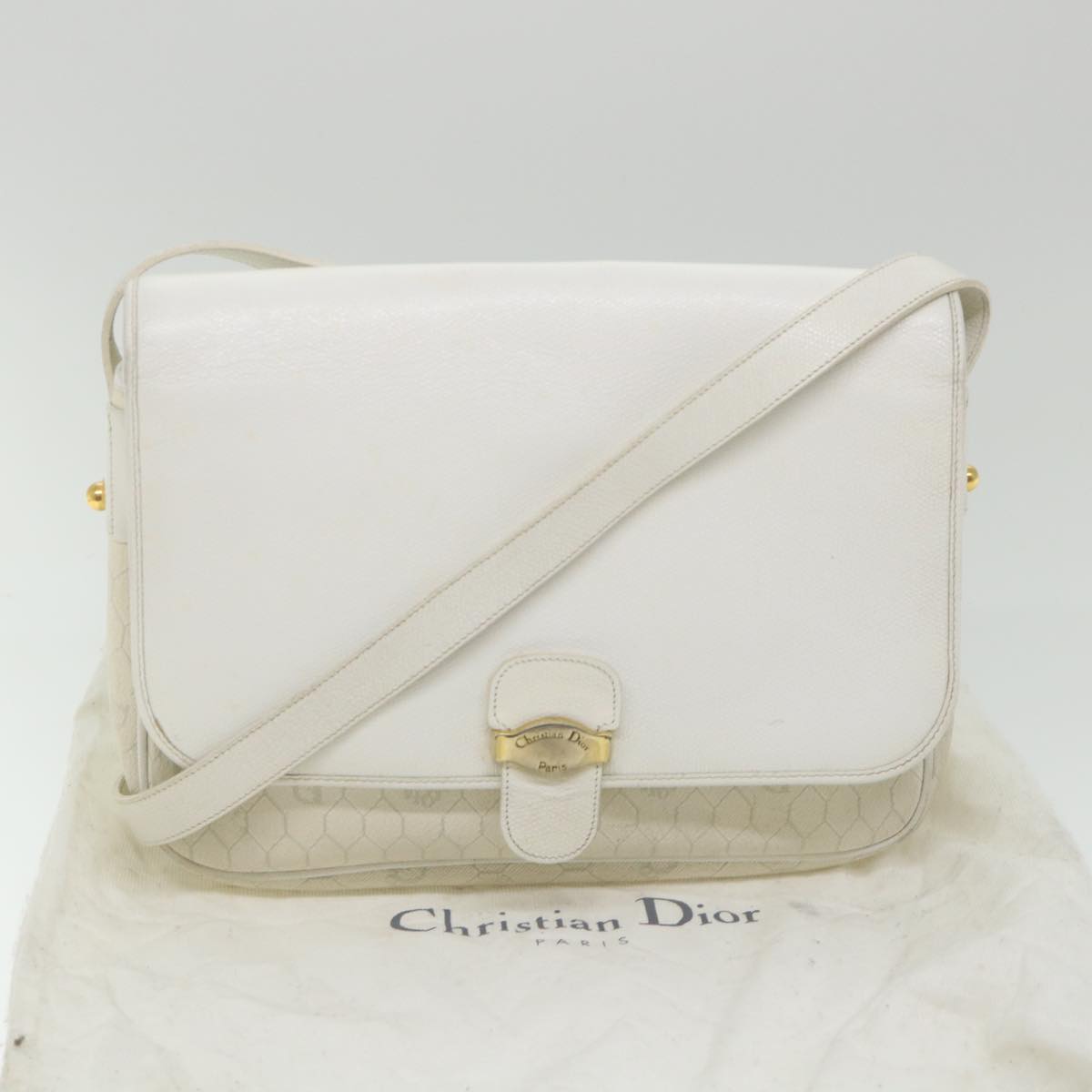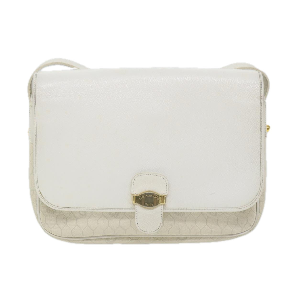 CHRISTIAN DIOR Honeycomb Canvas Shoulder Bag Leather White Auth bs9992