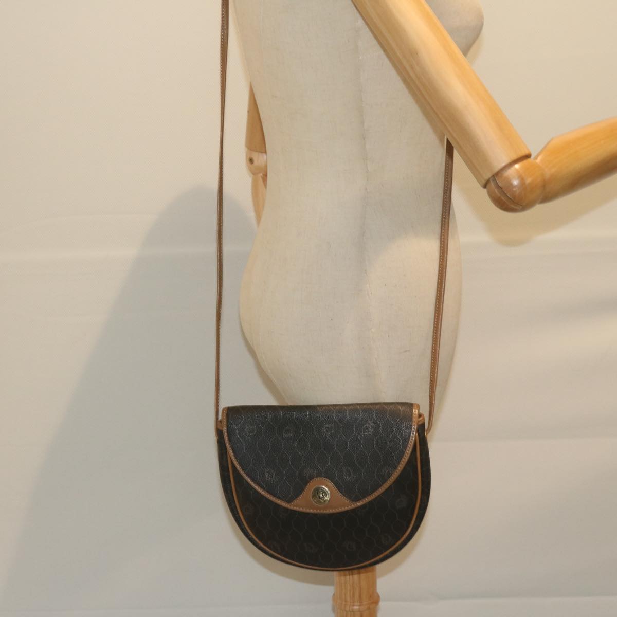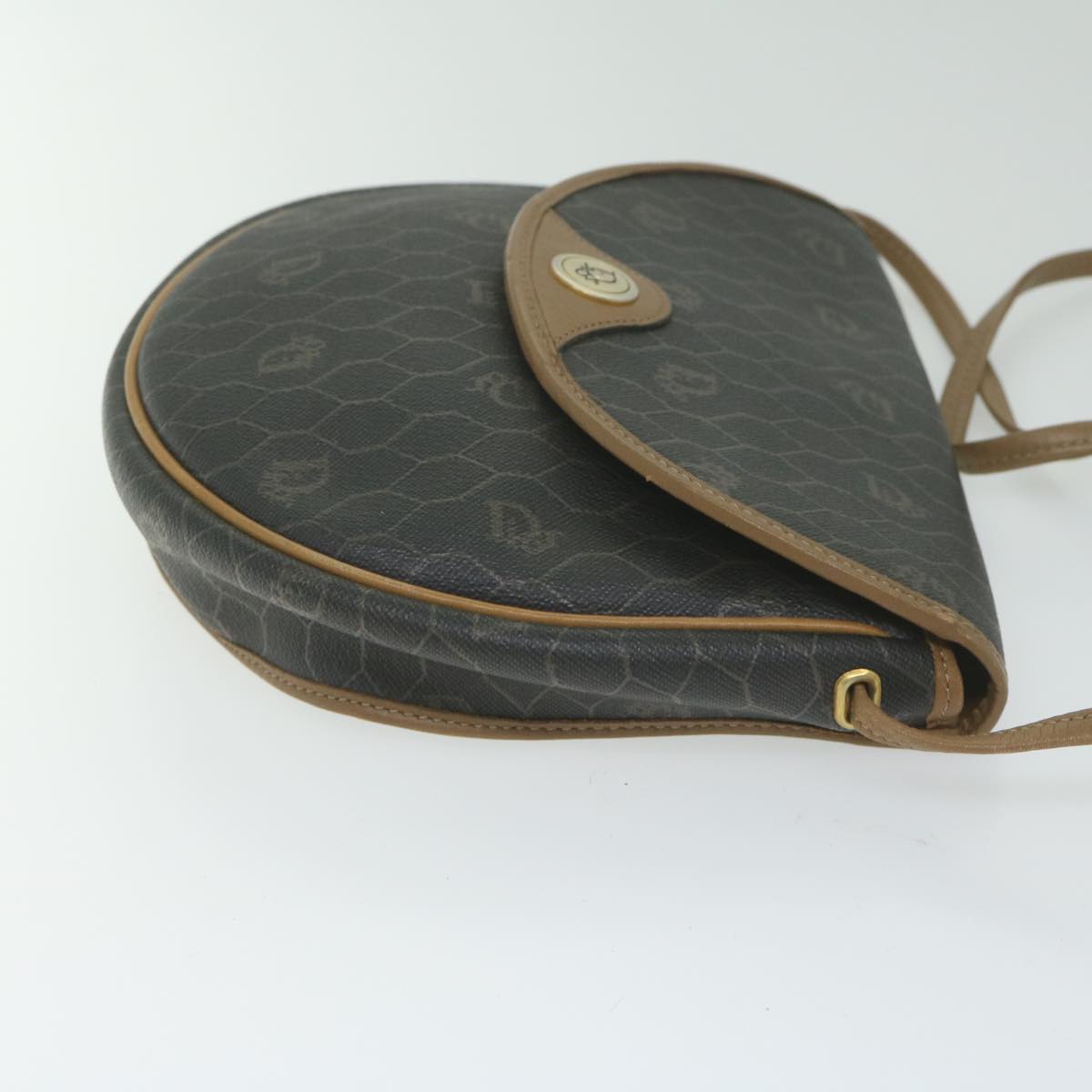 CHRISTIAN DIOR Honeycomb Canvas Shoulder Bag PVC Leather Black Auth am5361