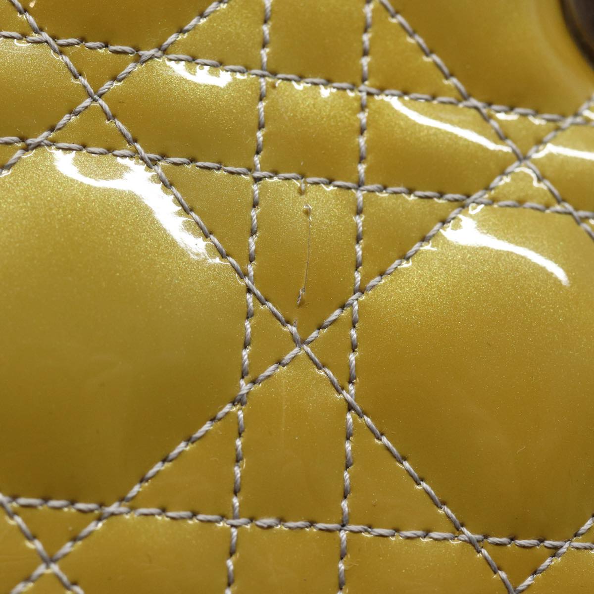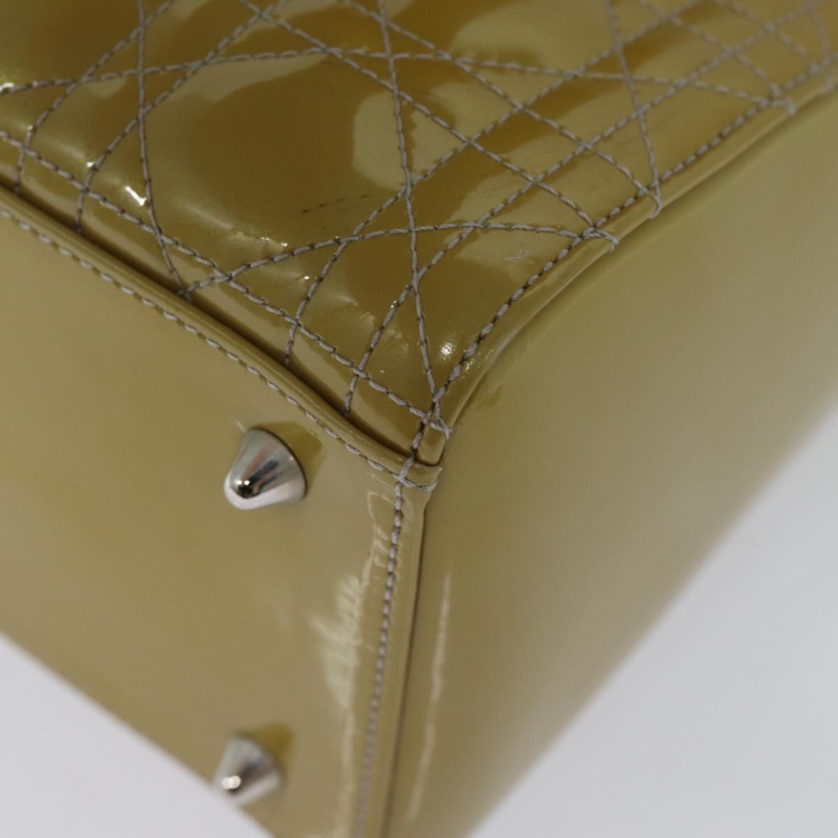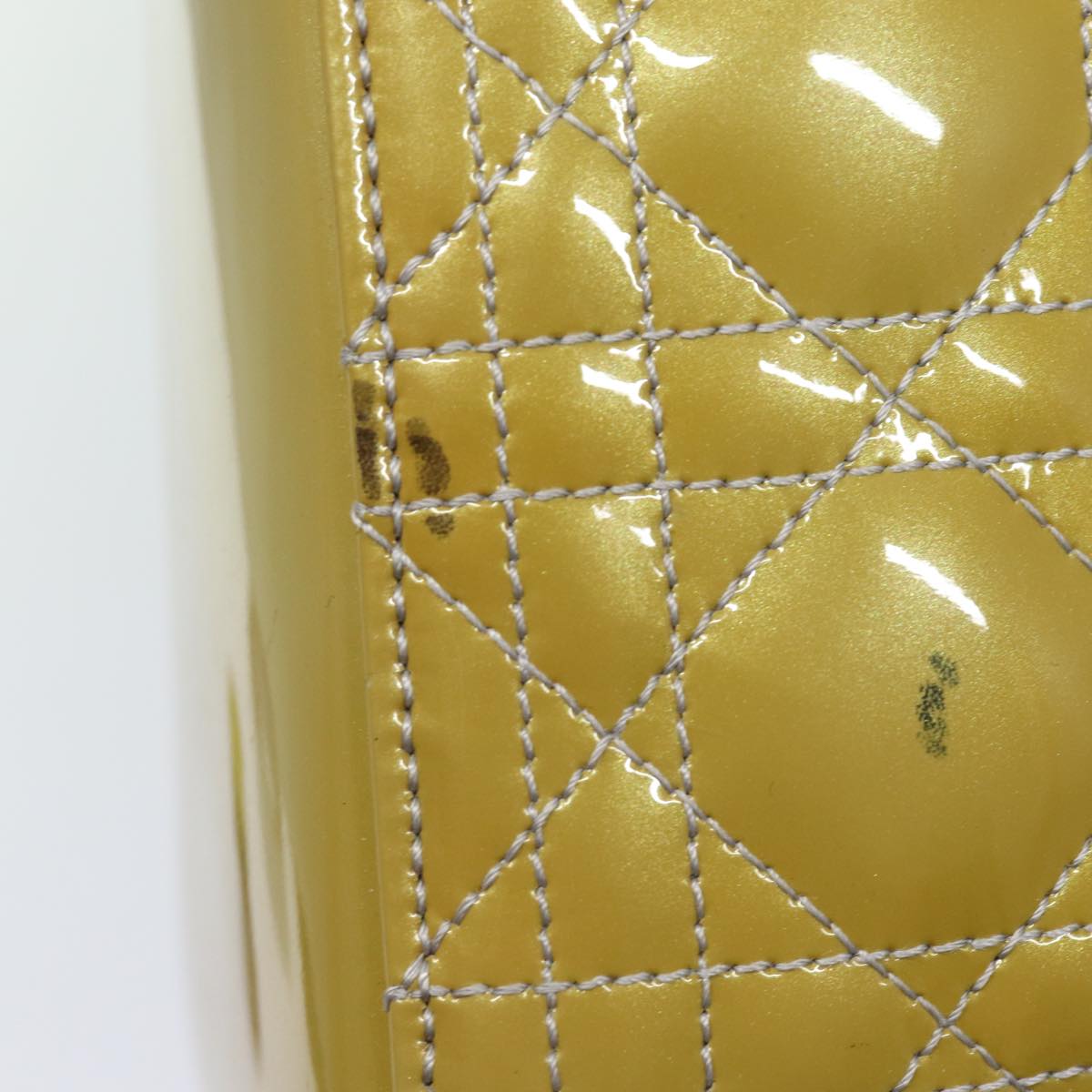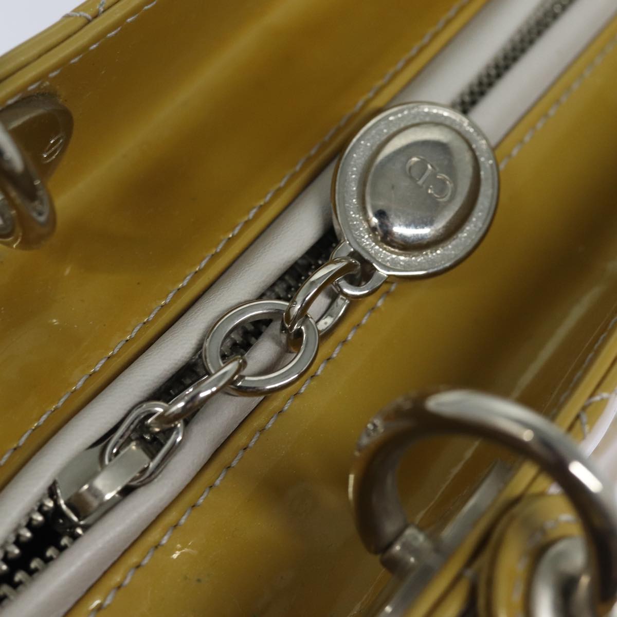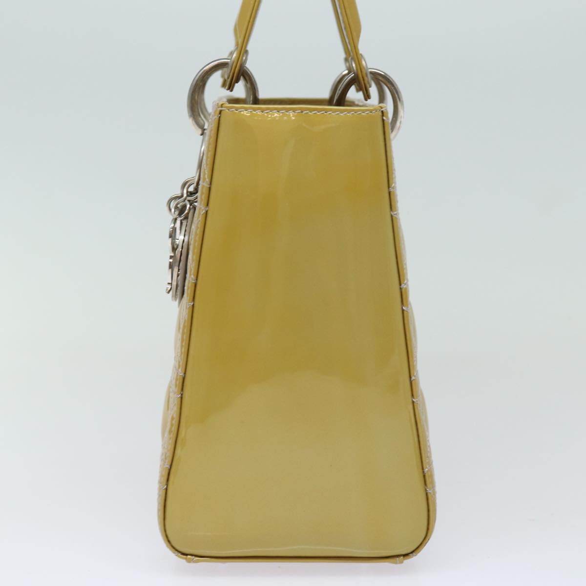 CHRISTIAN DIOR Lady Dior Canage Hand Bag Enamel 2way Yellow Auth yk13927