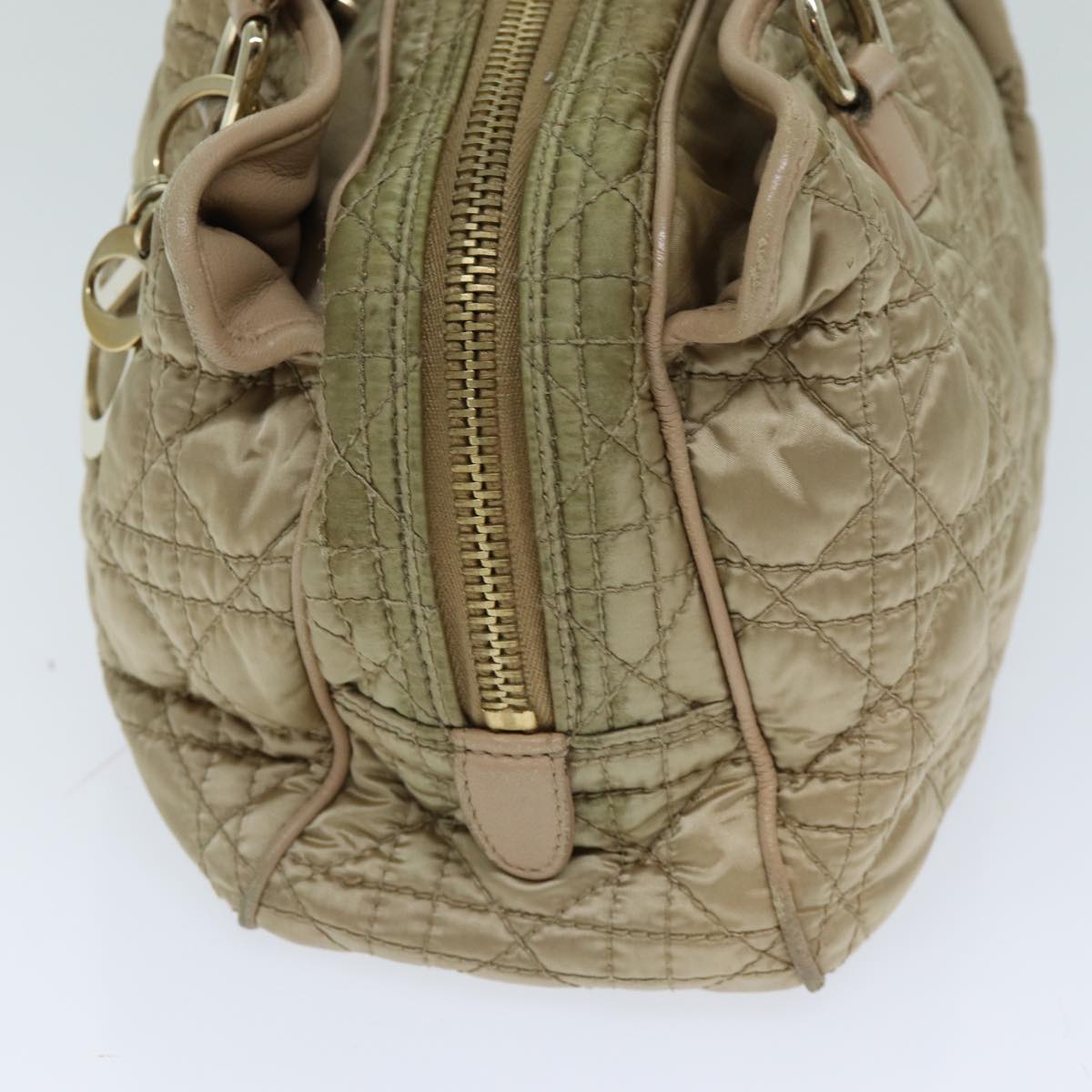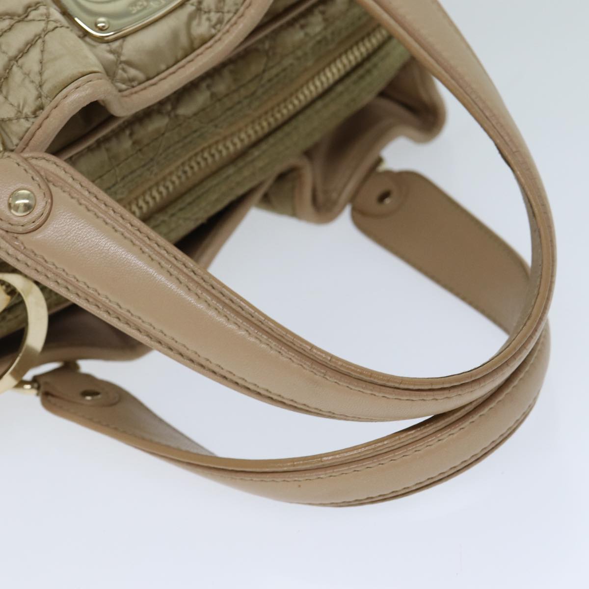 CHRISTIAN DIOR Lady Dior Canage Hand Bag Nylon Beige Auth bs14404