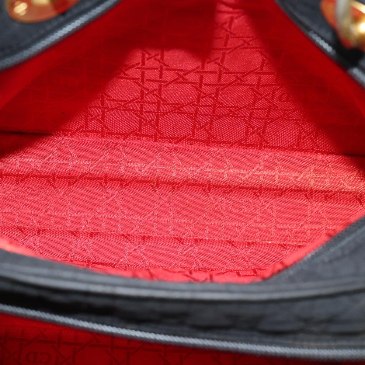 CHRISTIAN DIOR Lady Dior Canage Hand Bag Nylon Black Auth bs16352