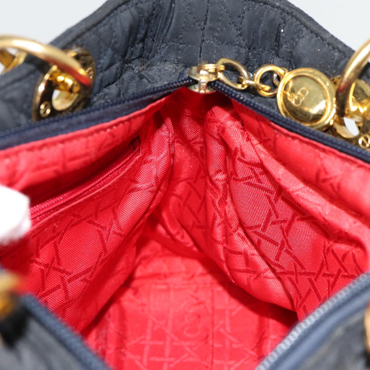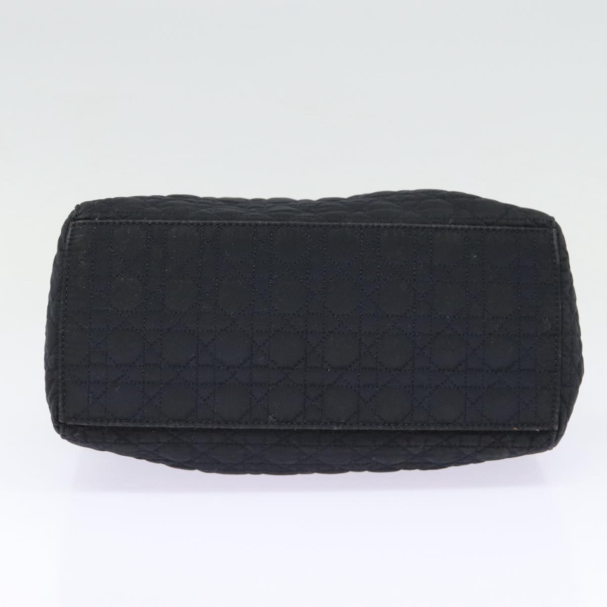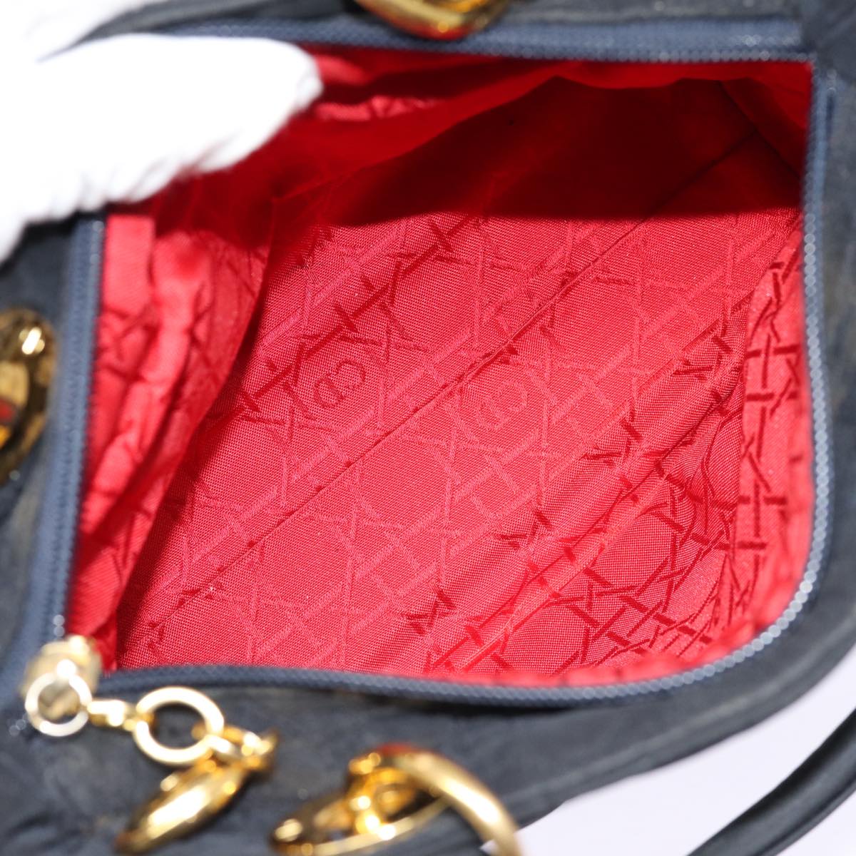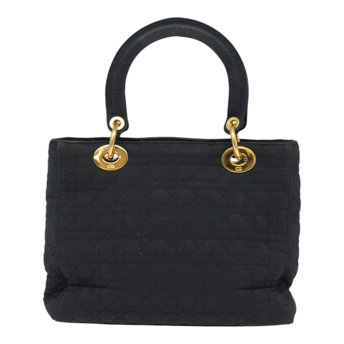 CHRISTIAN DIOR Lady Dior Canage Hand Bag Nylon Black Gold Auth yk14341