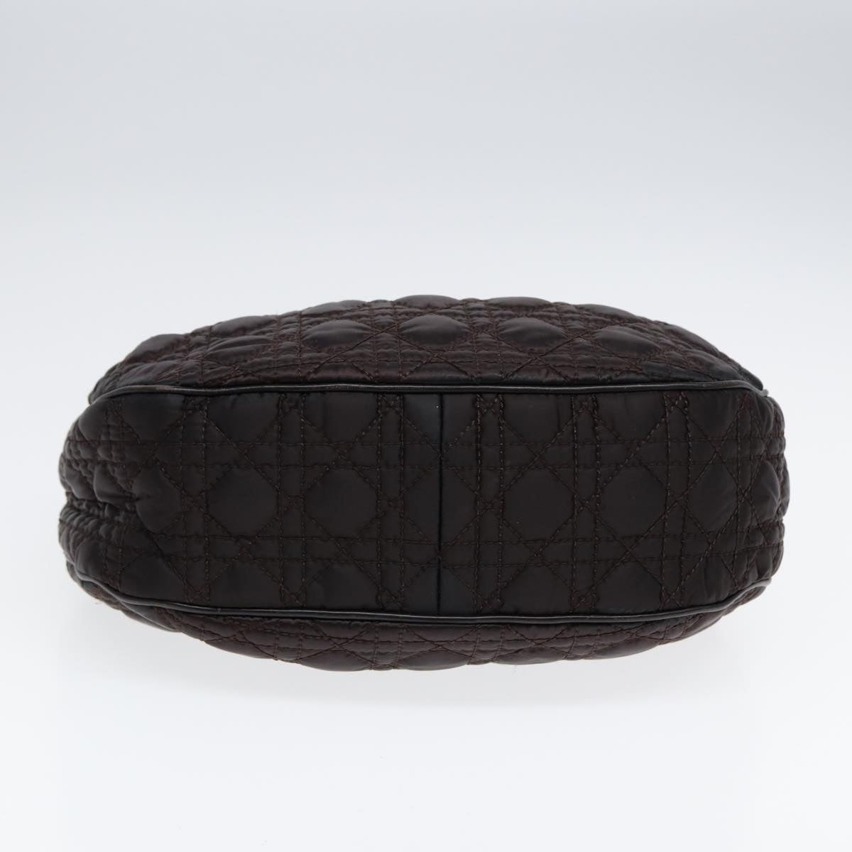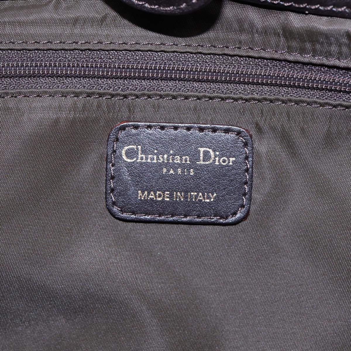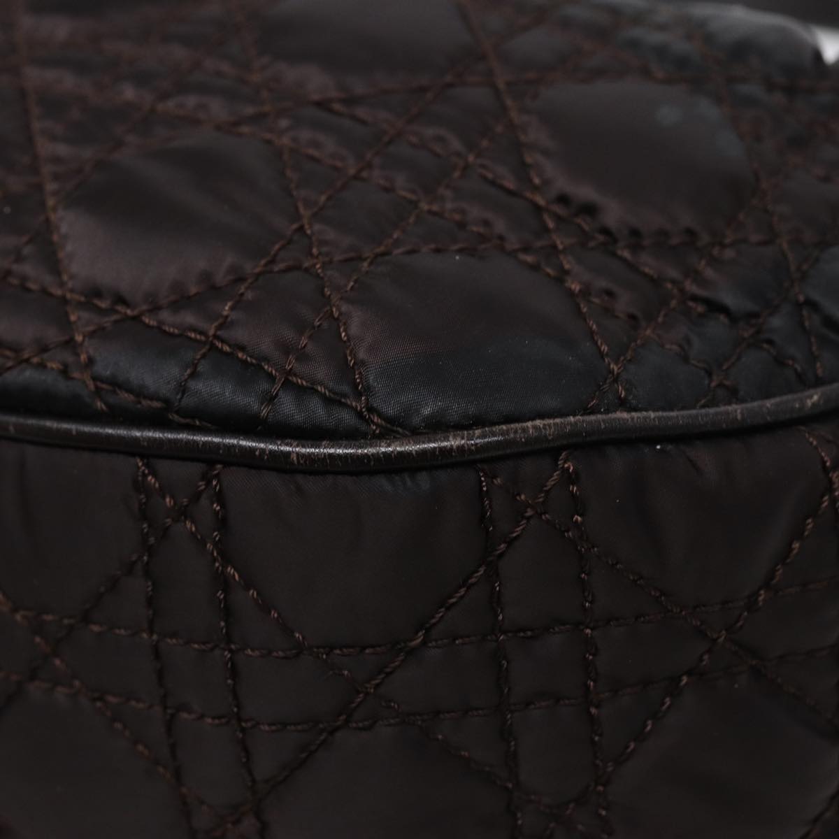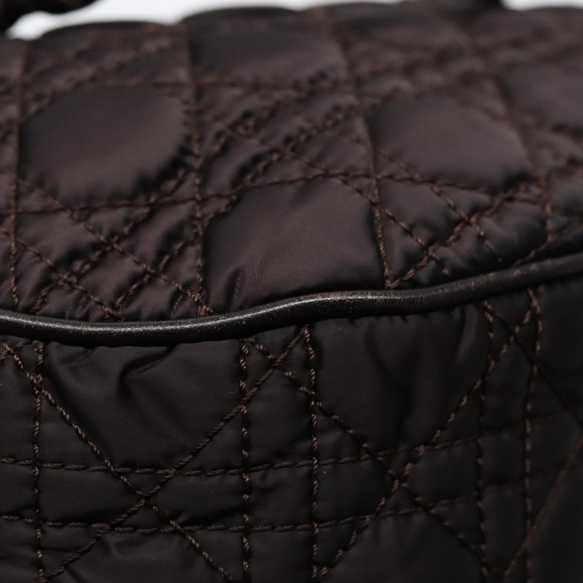 CHRISTIAN DIOR Lady Dior Canage Hand Bag Nylon Brown Gold Auth ep5346