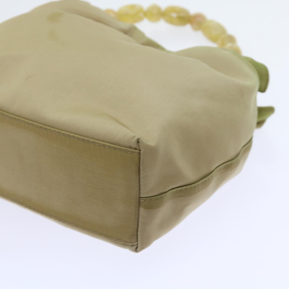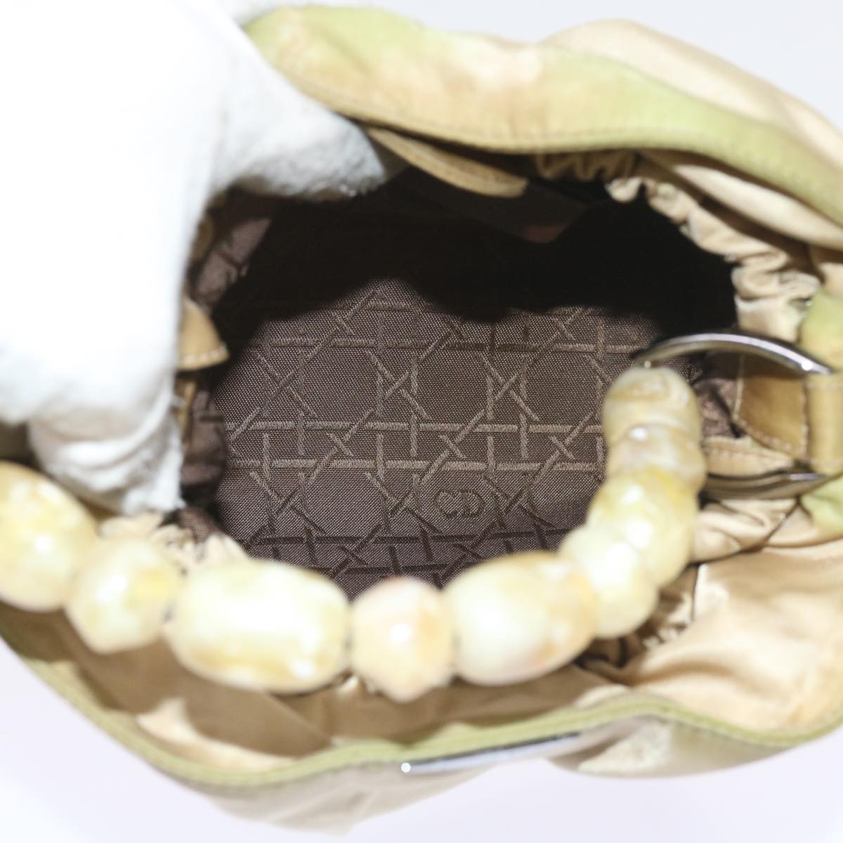 CHRISTIAN DIOR Maris Pearl Hand Bag Nylon Khaki Auth bs9763
