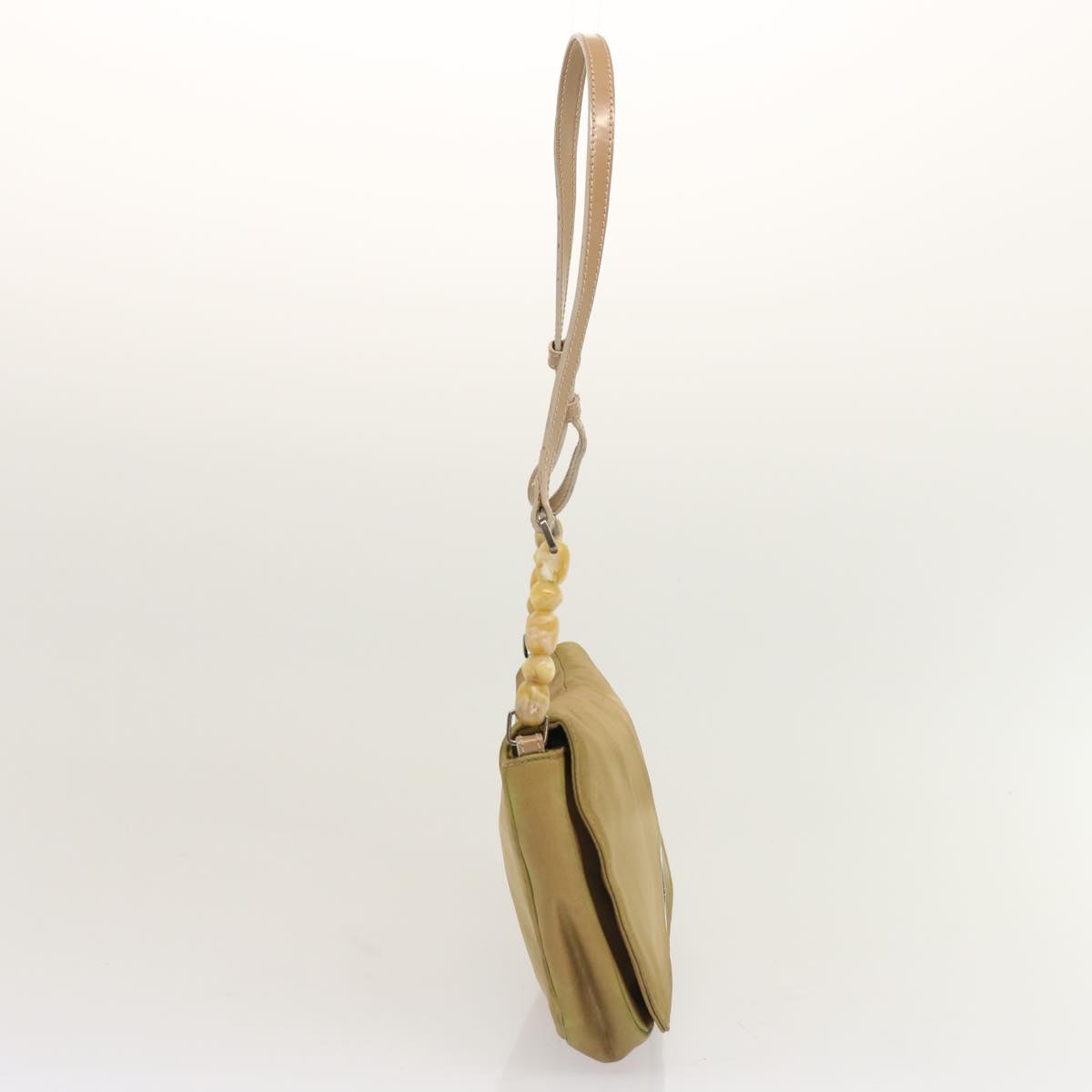 CHRISTIAN DIOR Maris Pearl Shoulder Bag Nylon Beige Auth 70945