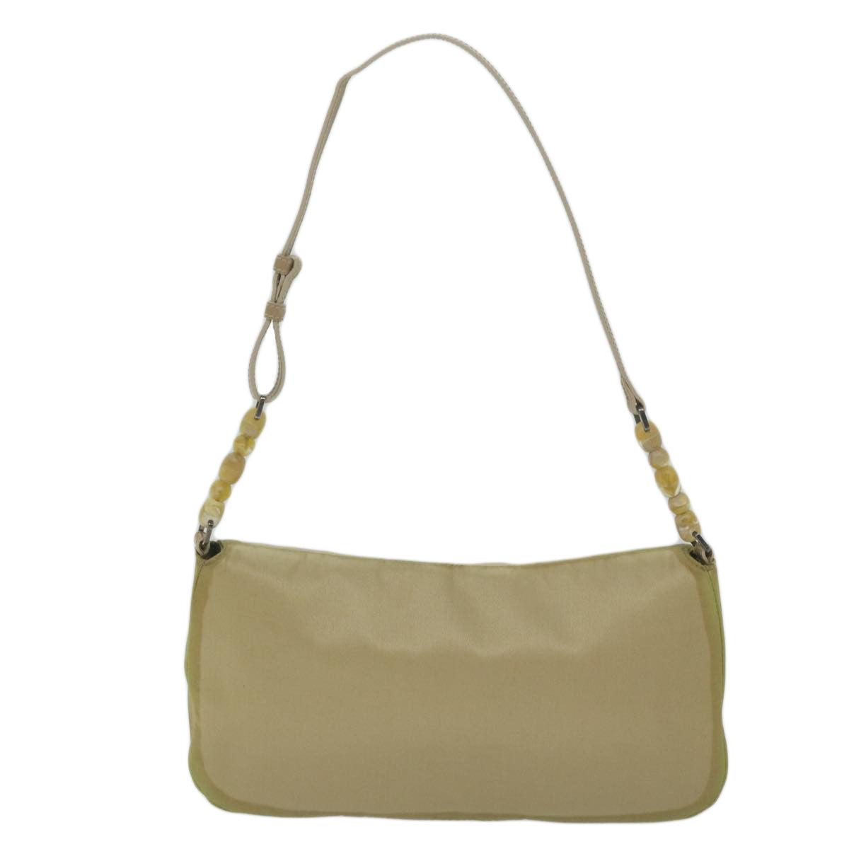 CHRISTIAN DIOR Maris Pearl Shoulder Bag Nylon Khaki Auth bs10532