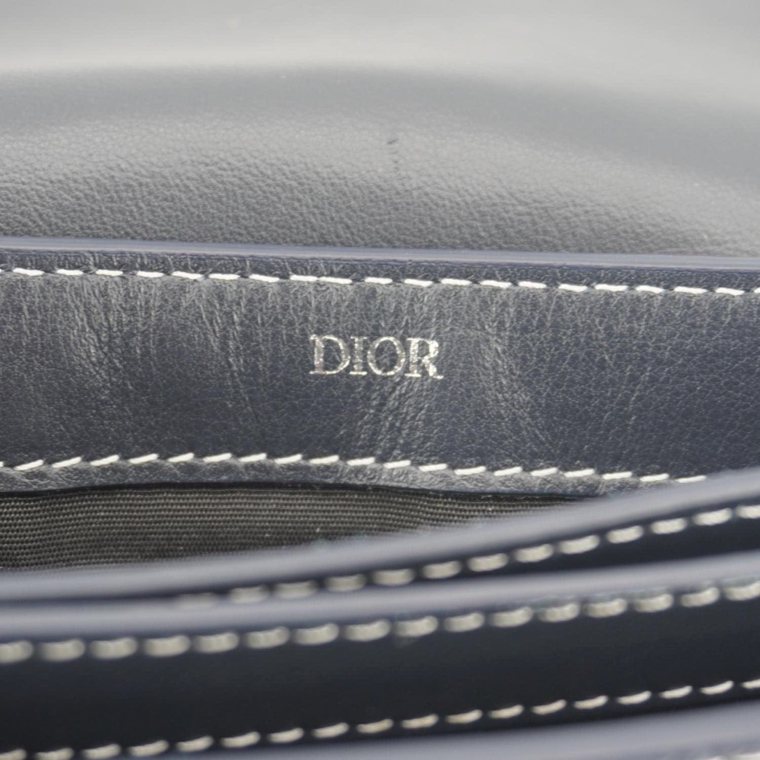 The Christian Dior Saddle Wristlet in navy blue leather reimagines the iconic Saddle silhouette in a compact, versatile design. Perfect for carrying essentials with effortless elegance.