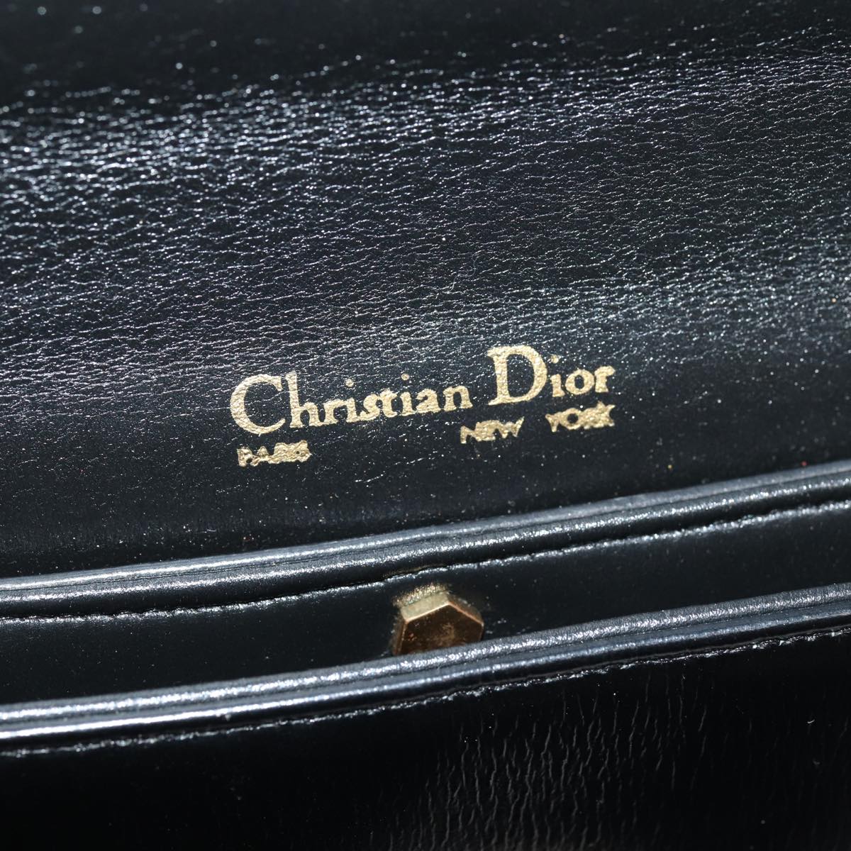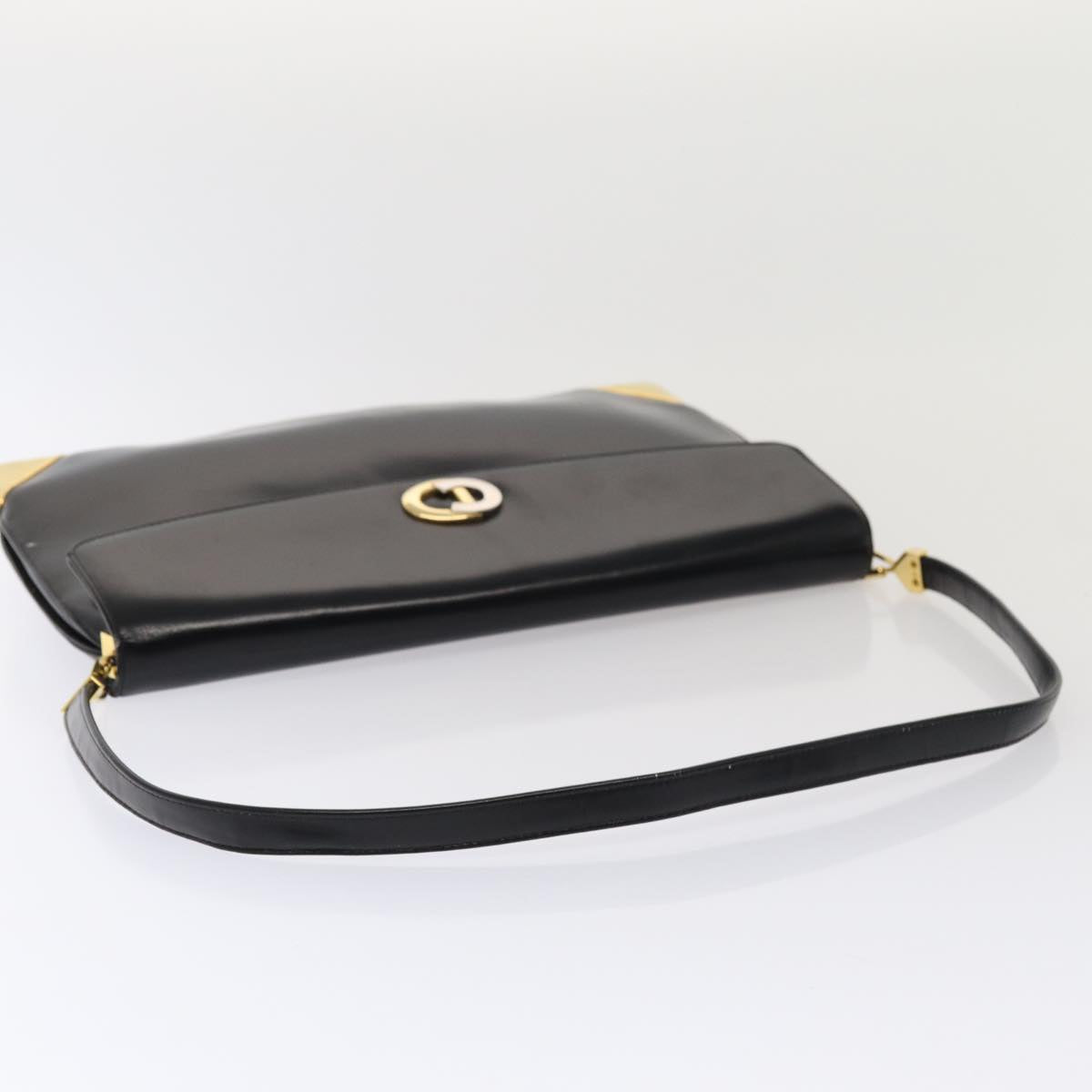 CHRISTIAN DIOR Shoulder Bag Leather Black Gold Auth bs17308