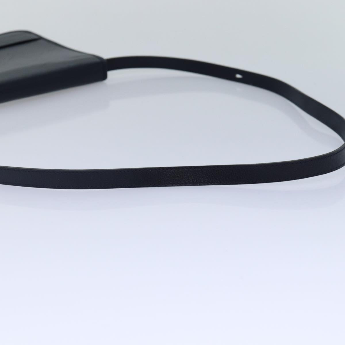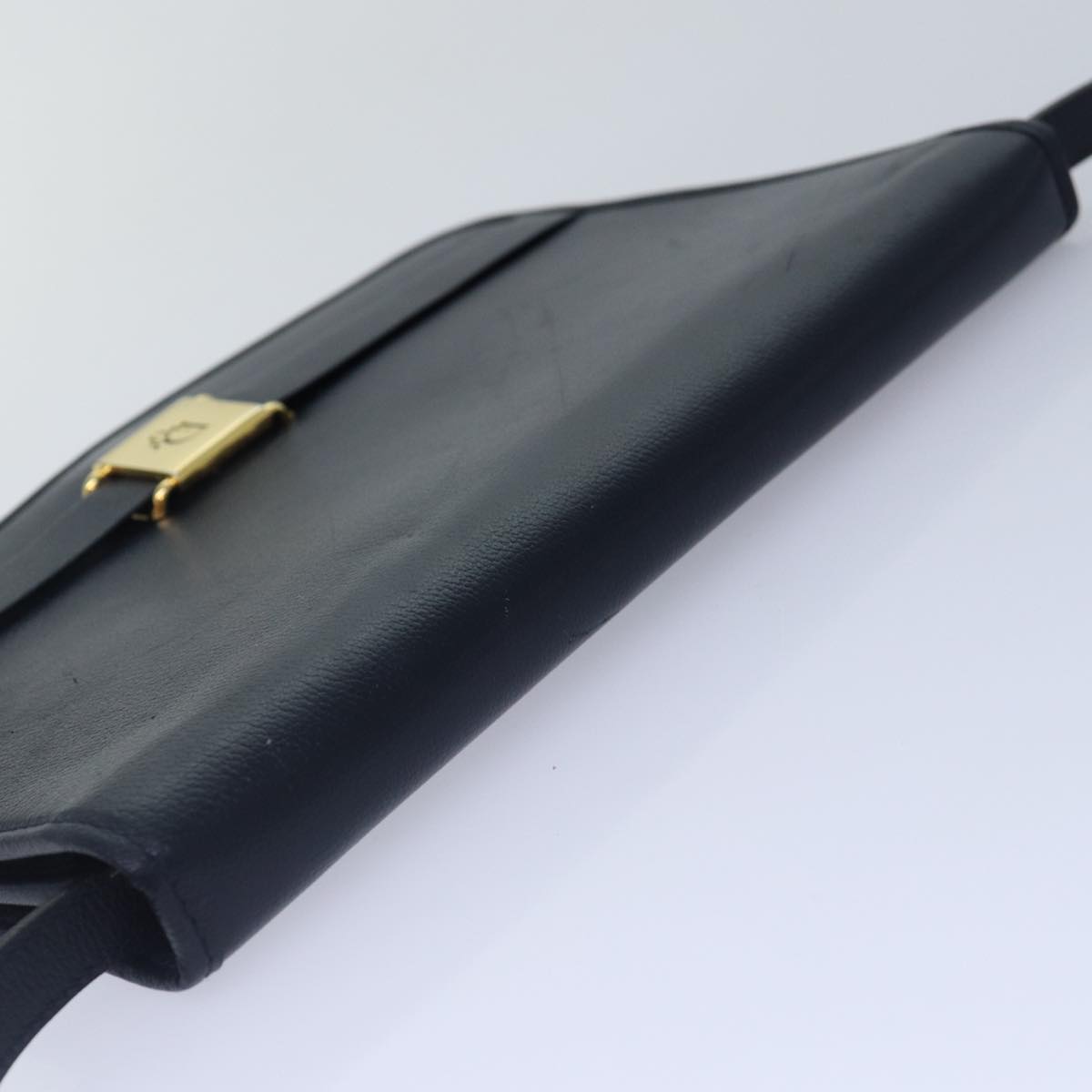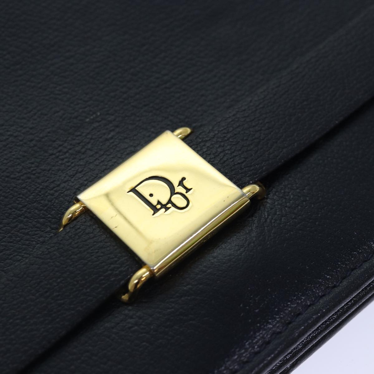 CHRISTIAN DIOR Shoulder Bag Leather Navy Gold Auth yk14399