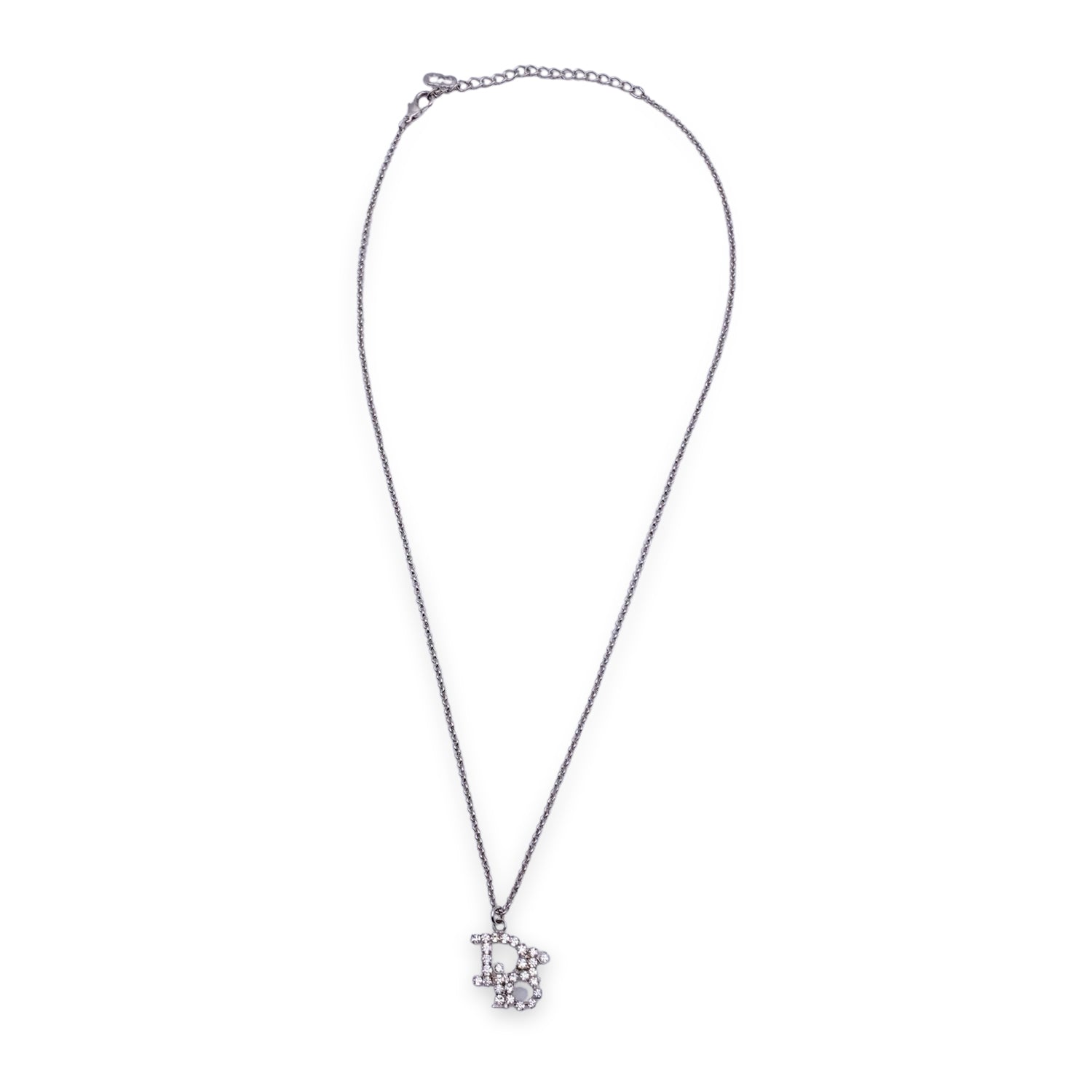 CHRISTIAN Top quality Dior Silver Metal Crystals Oblique Logo Necklace