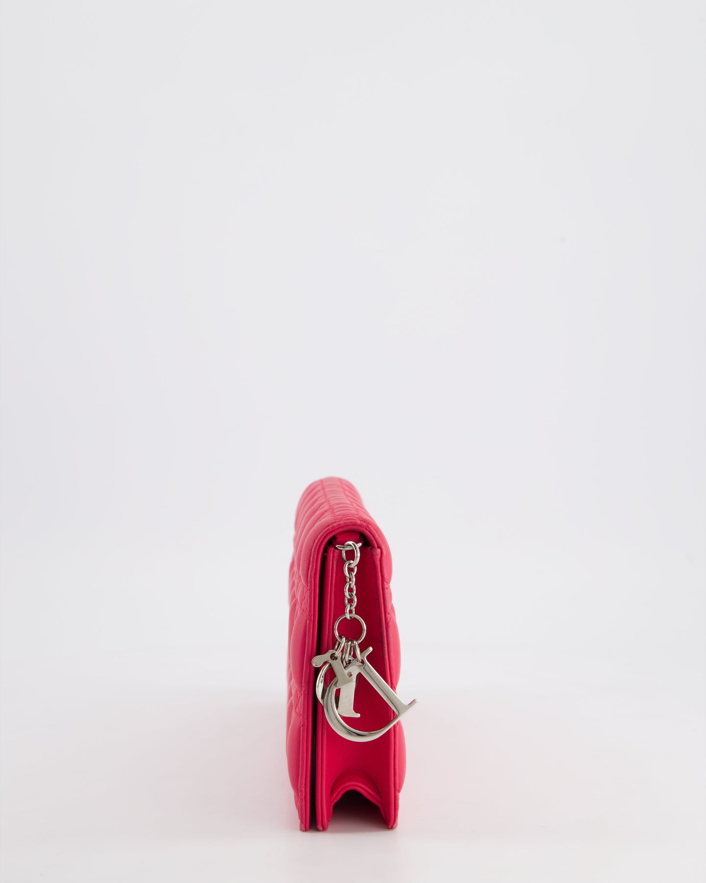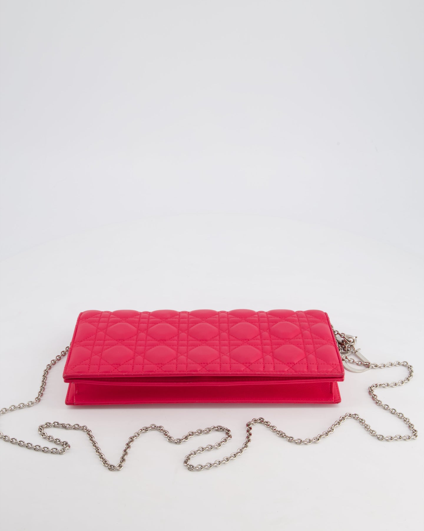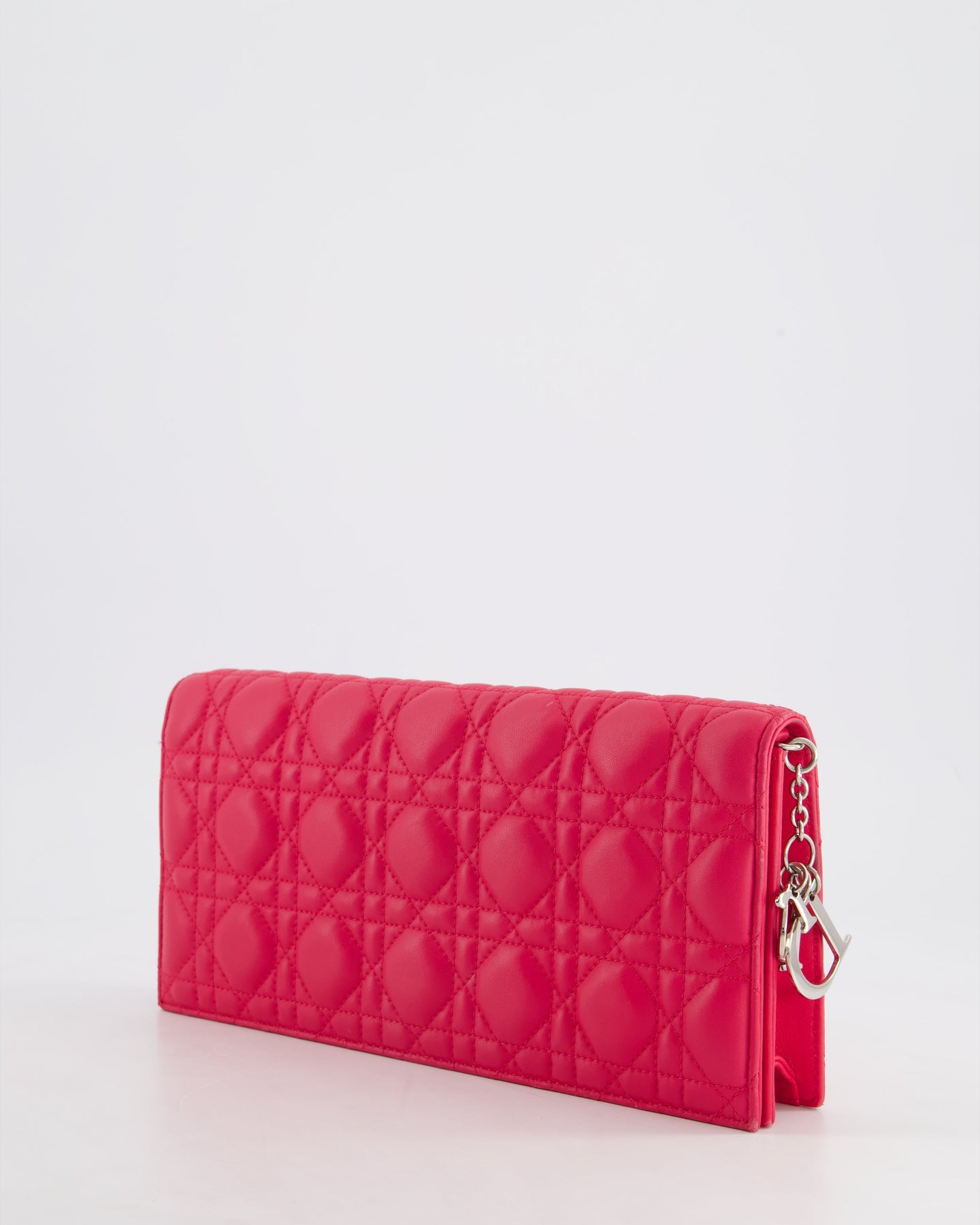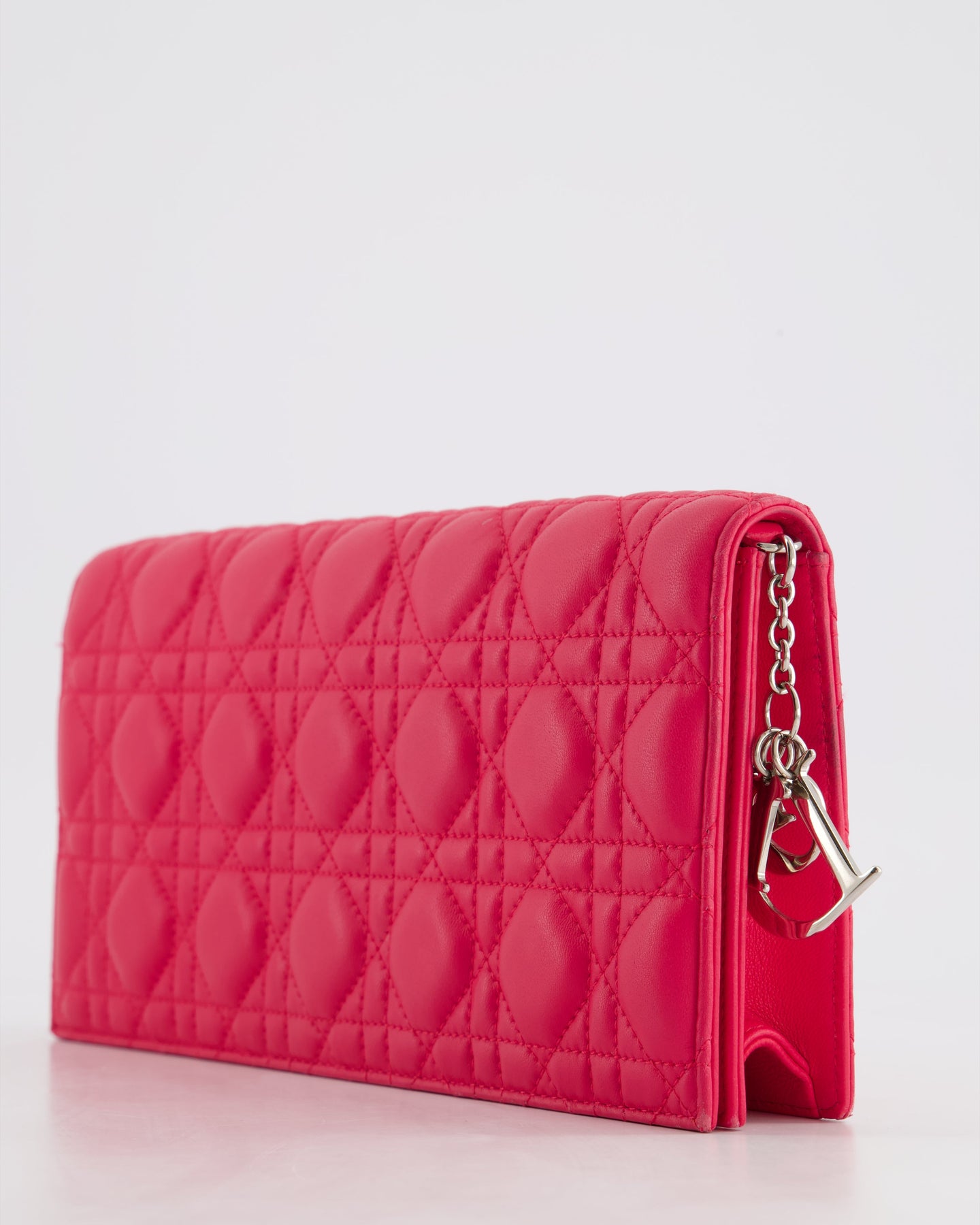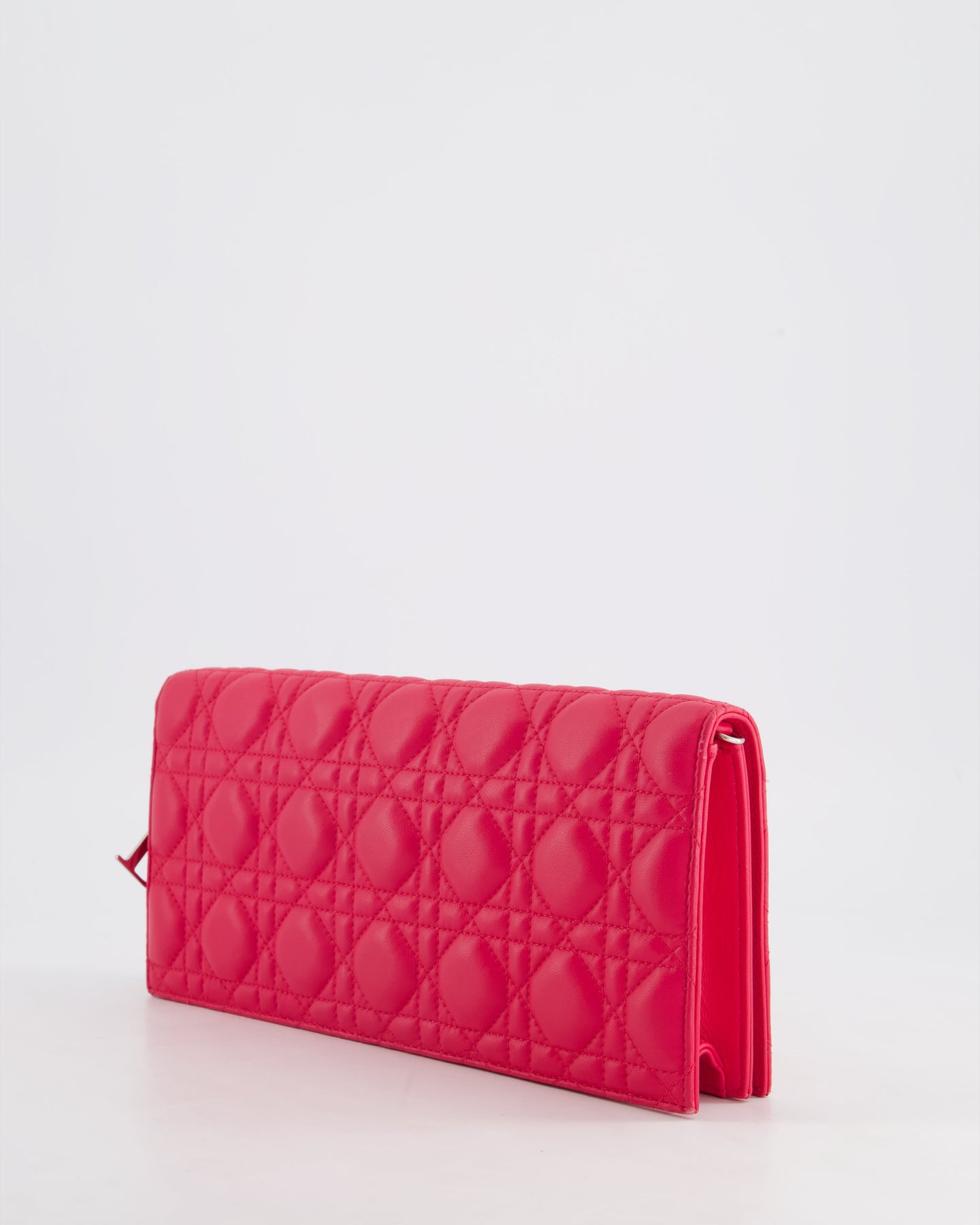 Christian Dior Strawberry Pink Lady Dior Voyager Long Clutch with Champagne Gold Hardware