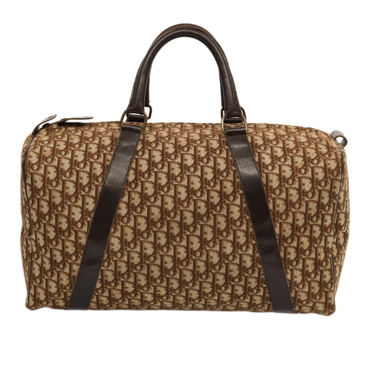 CHRISTIAN DIOR Trotter Canvas Boston Bag Beige Auth 74399