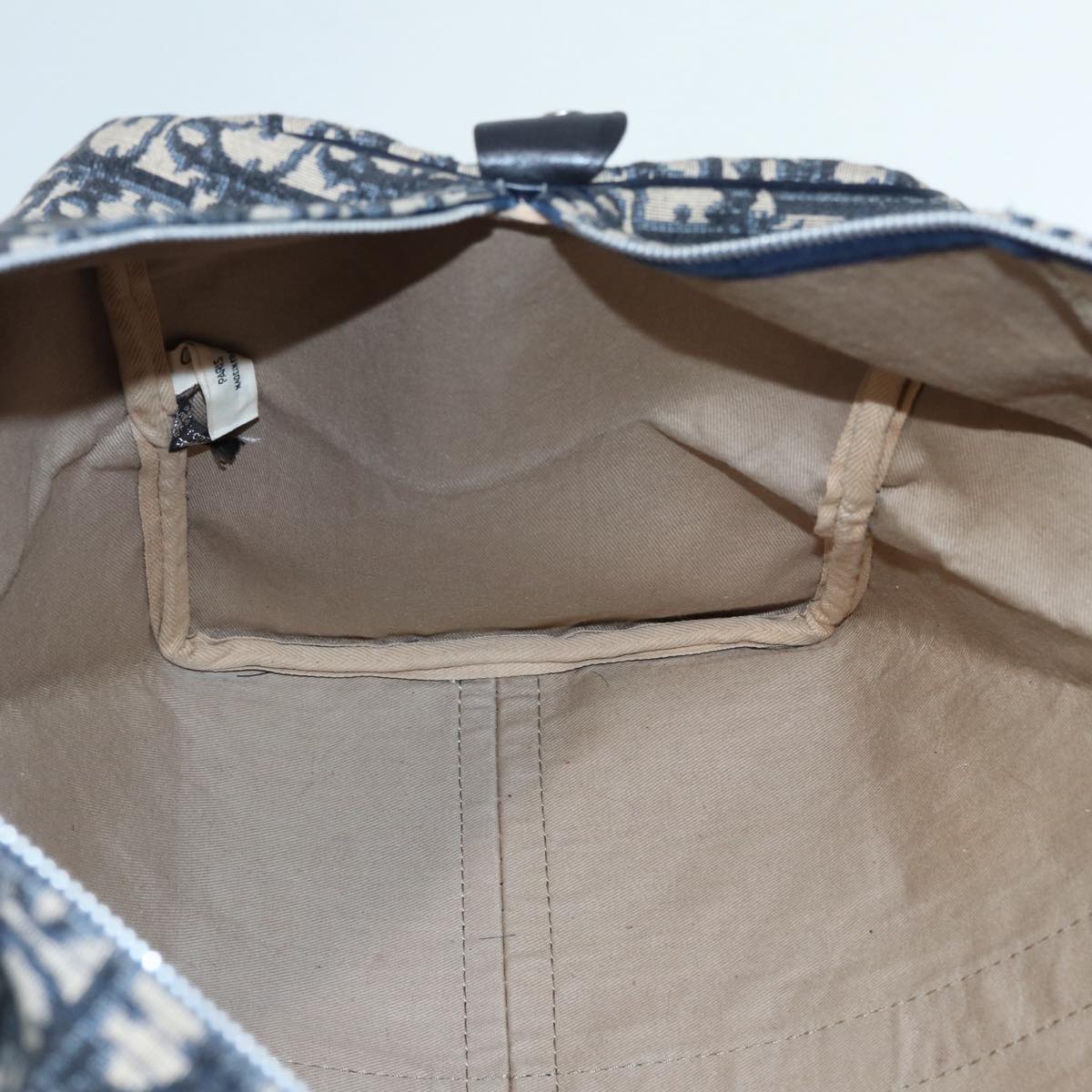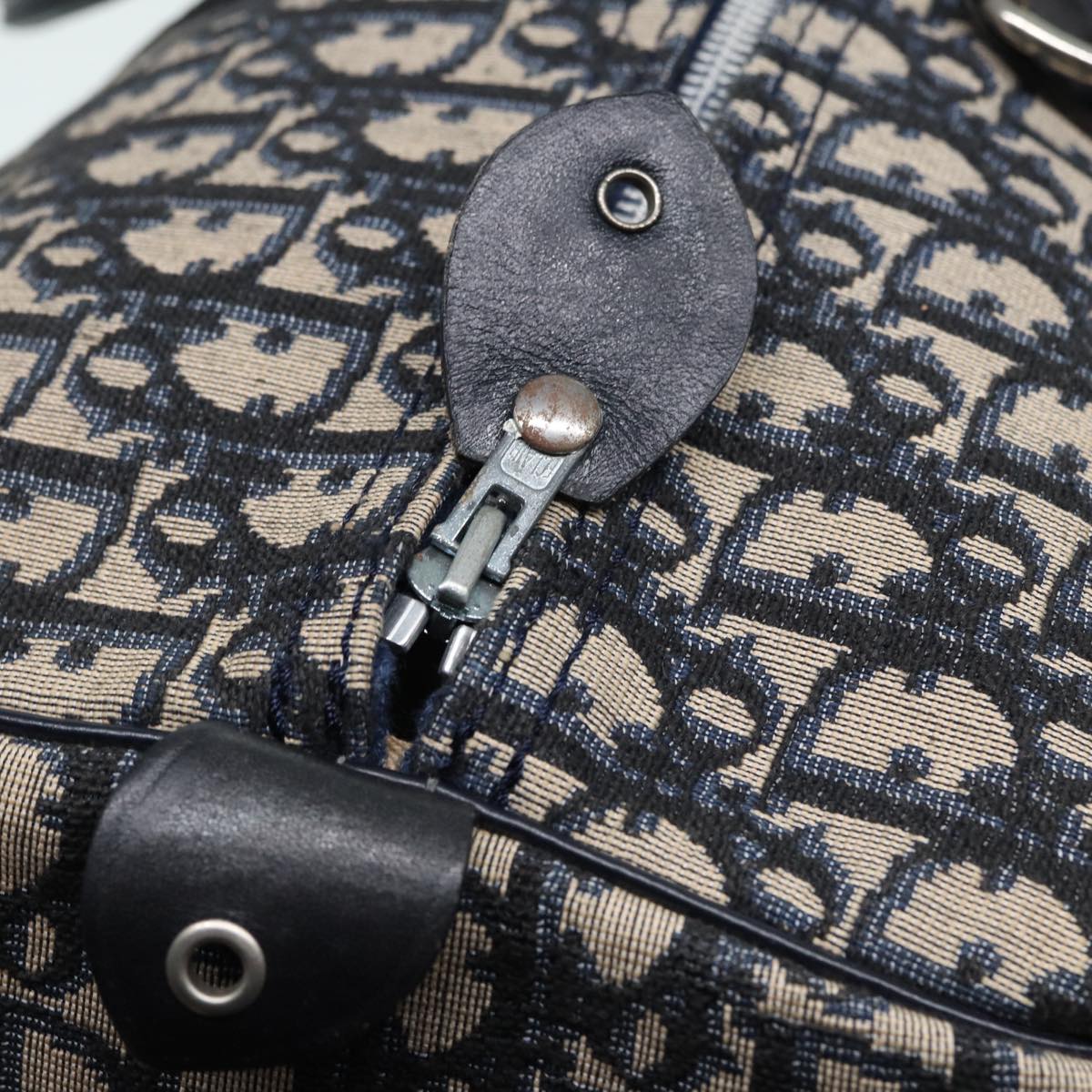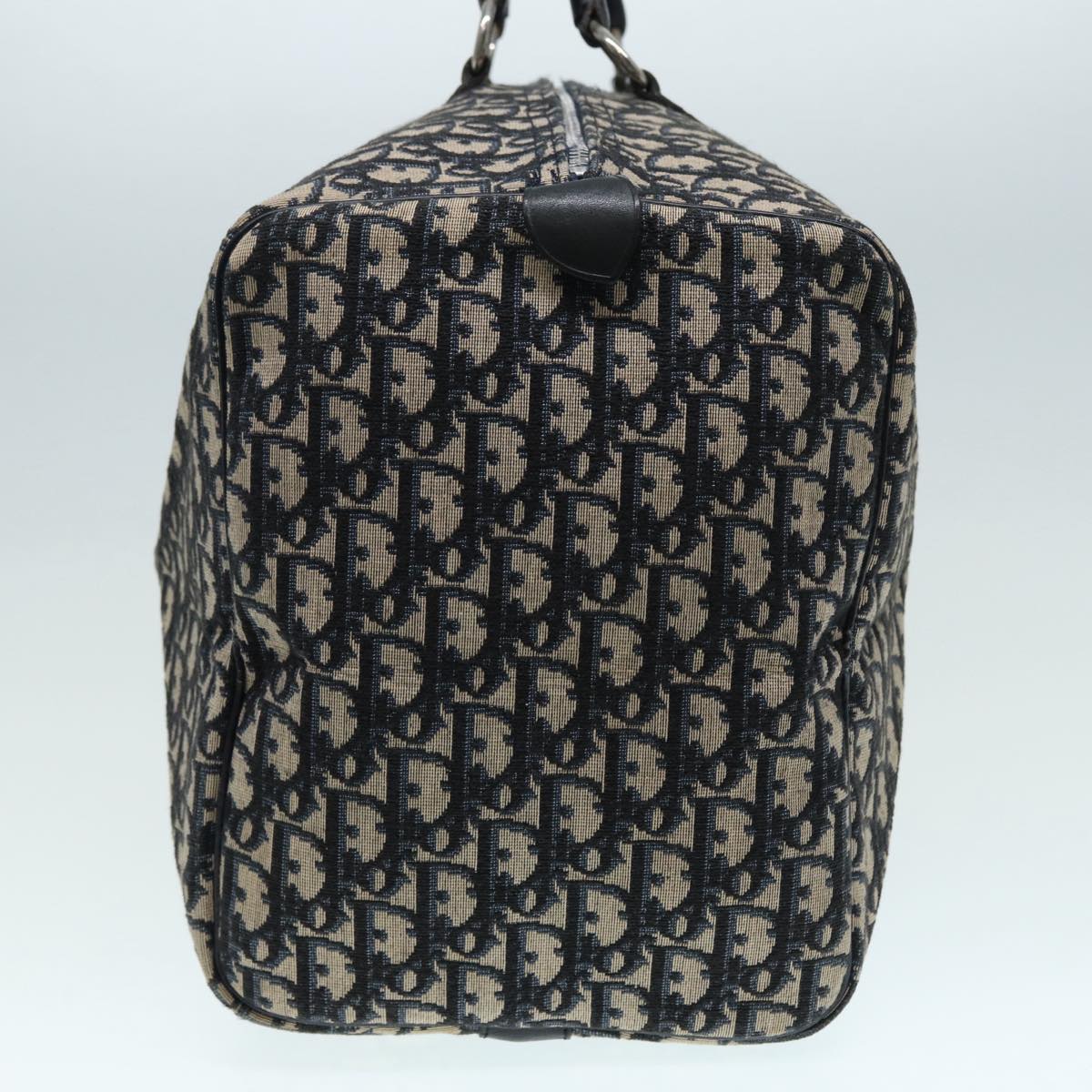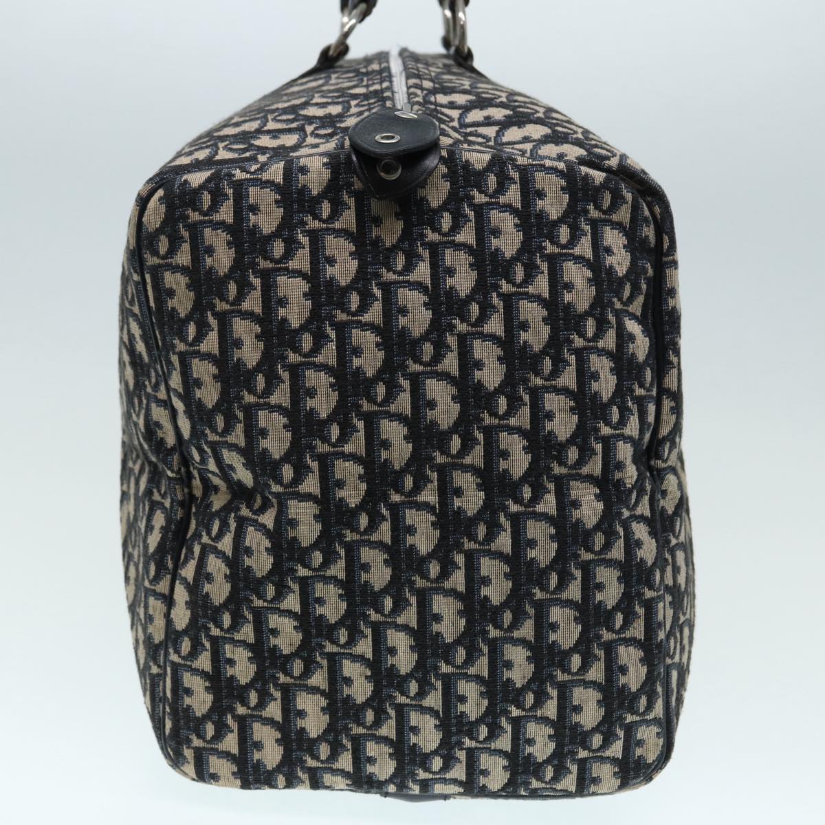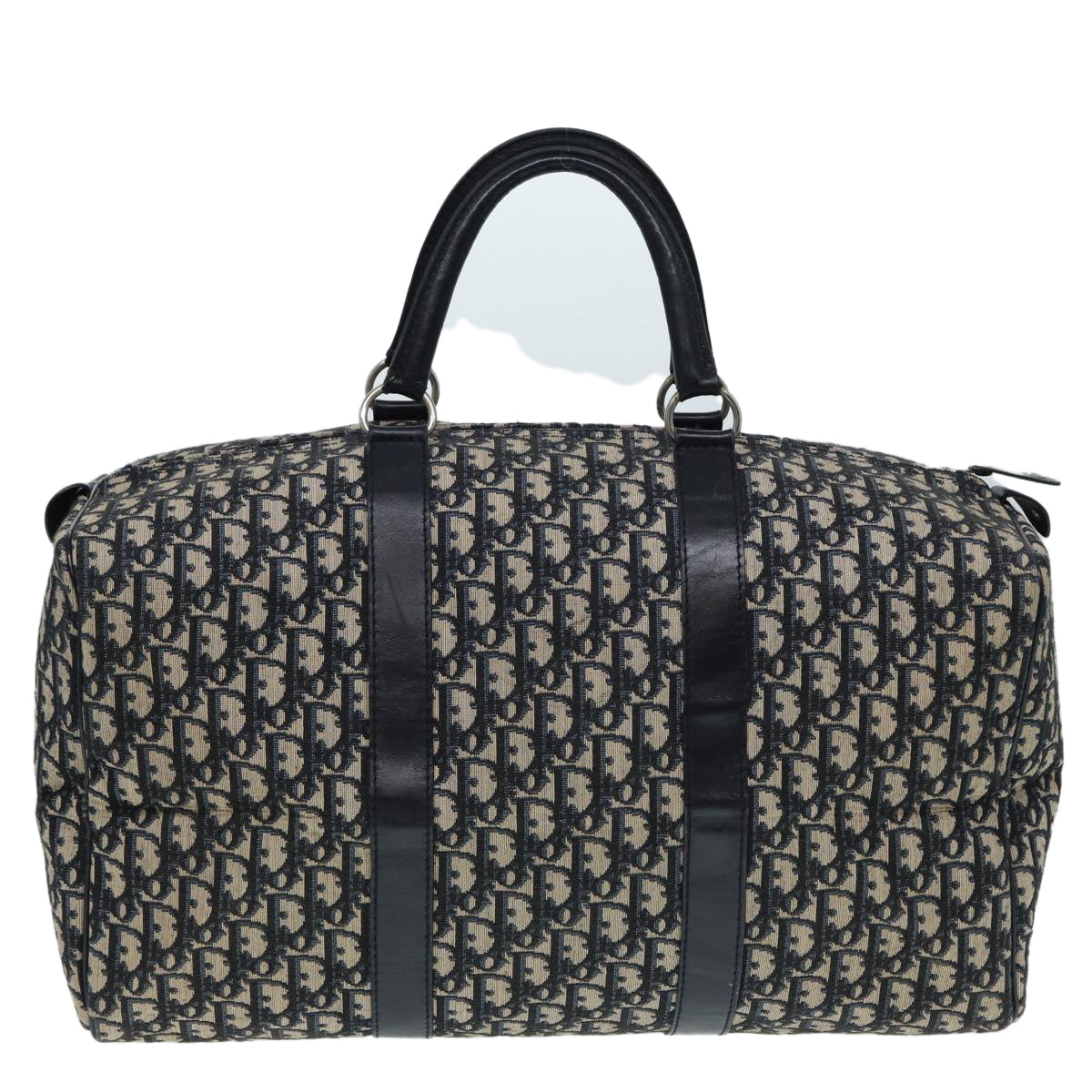 CHRISTIAN DIOR Trotter Canvas Boston Bag Navy Silver Auth ki4781