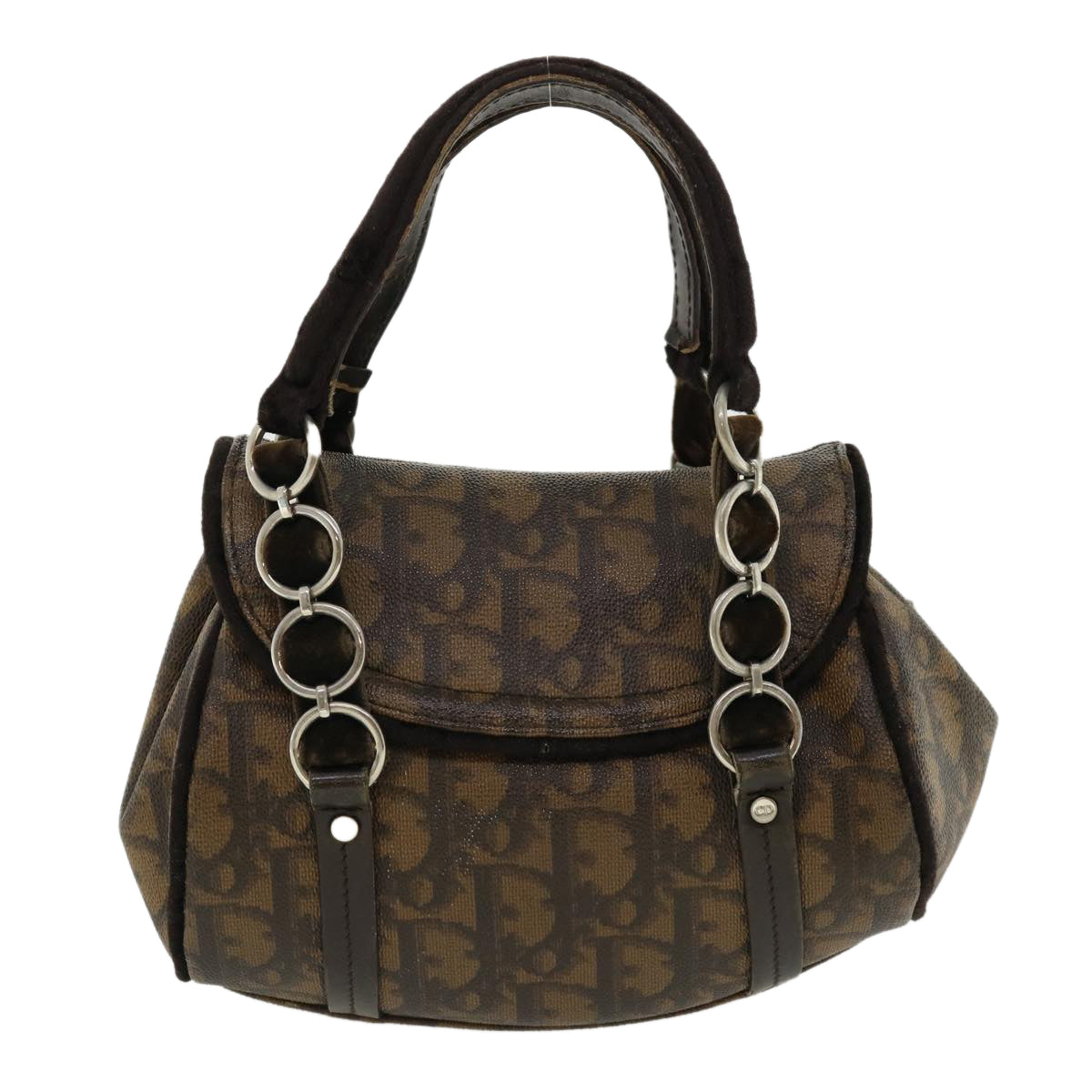 CHRISTIAN DIOR Trotter Canvas Hand Bag Brown Auth am3391