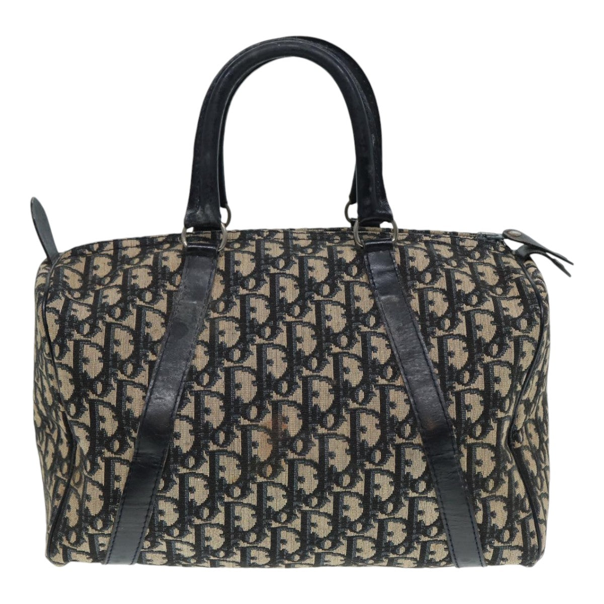 CHRISTIAN DIOR Trotter Canvas Hand Bag Navy Silver Auth 88131