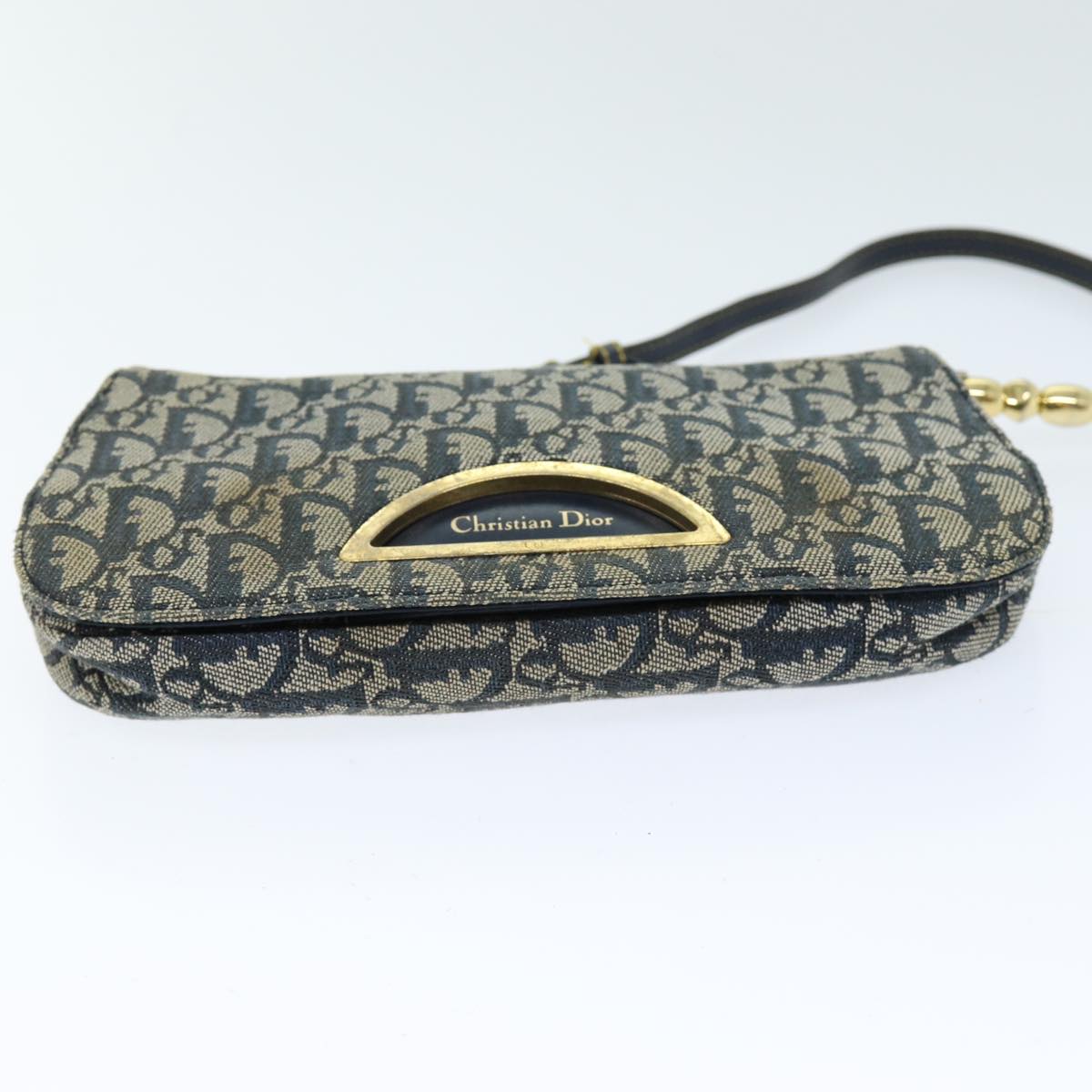 CHRISTIAN DIOR Trotter Canvas Maris Pearl Shoulder Bag Navy Auth 75455