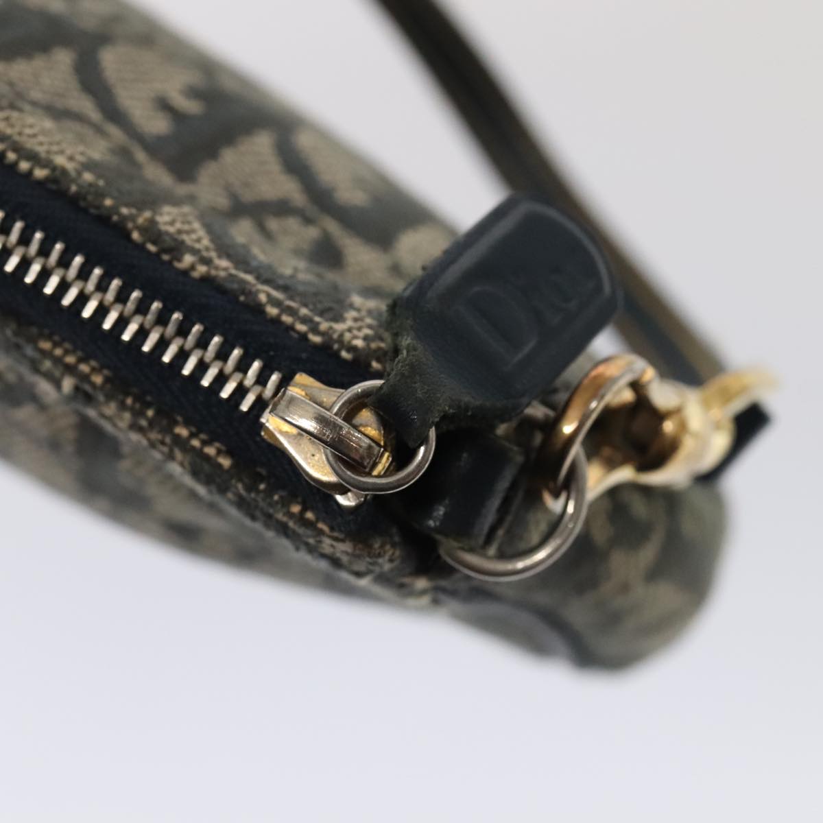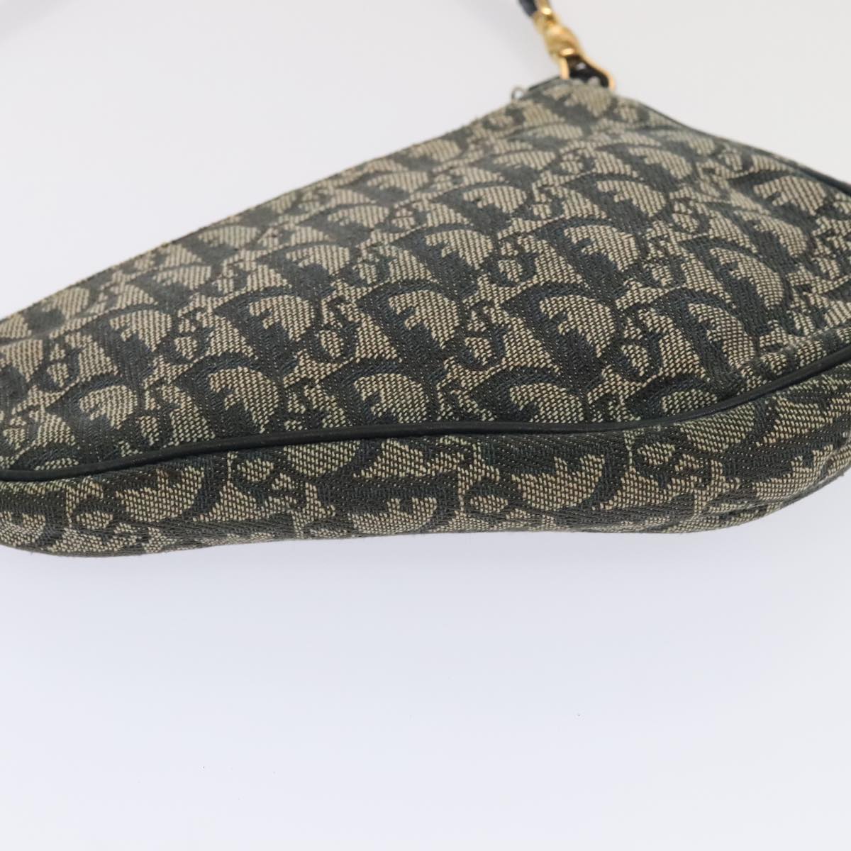 CHRISTIAN DIOR Trotter Canvas Saddle Pouch Accessory Pouch Navy Gold Auth ep5491