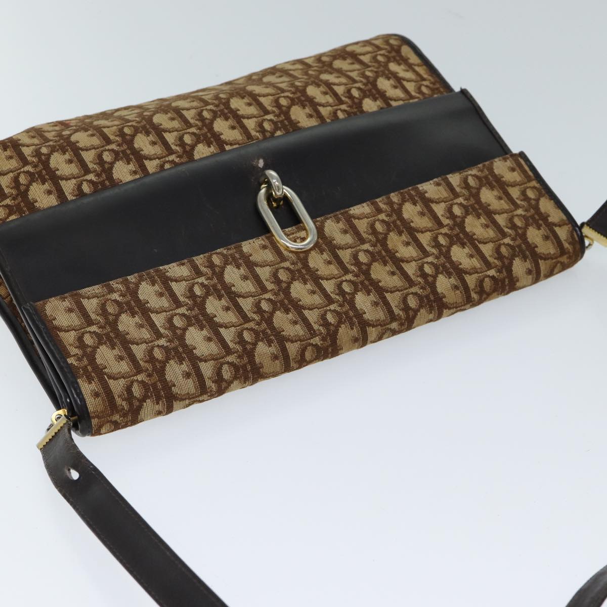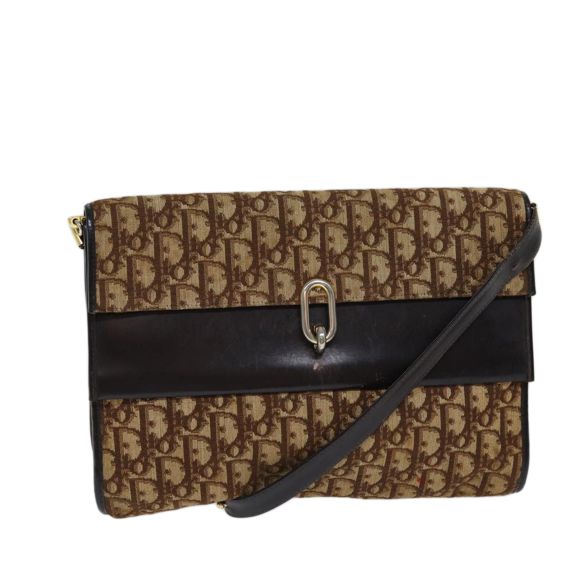 CHRISTIAN DIOR Trotter Canvas Shoulder Bag Brown Auth 72497