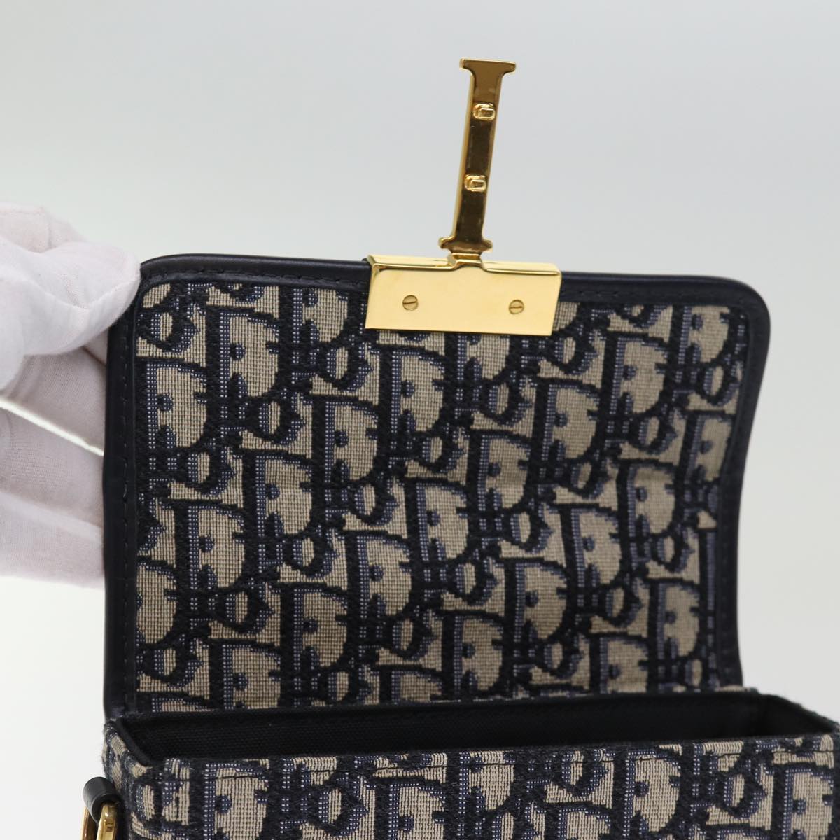 CHRISTIAN DIOR Trotter Canvas Shoulder Bag Navy Auth 74612SA