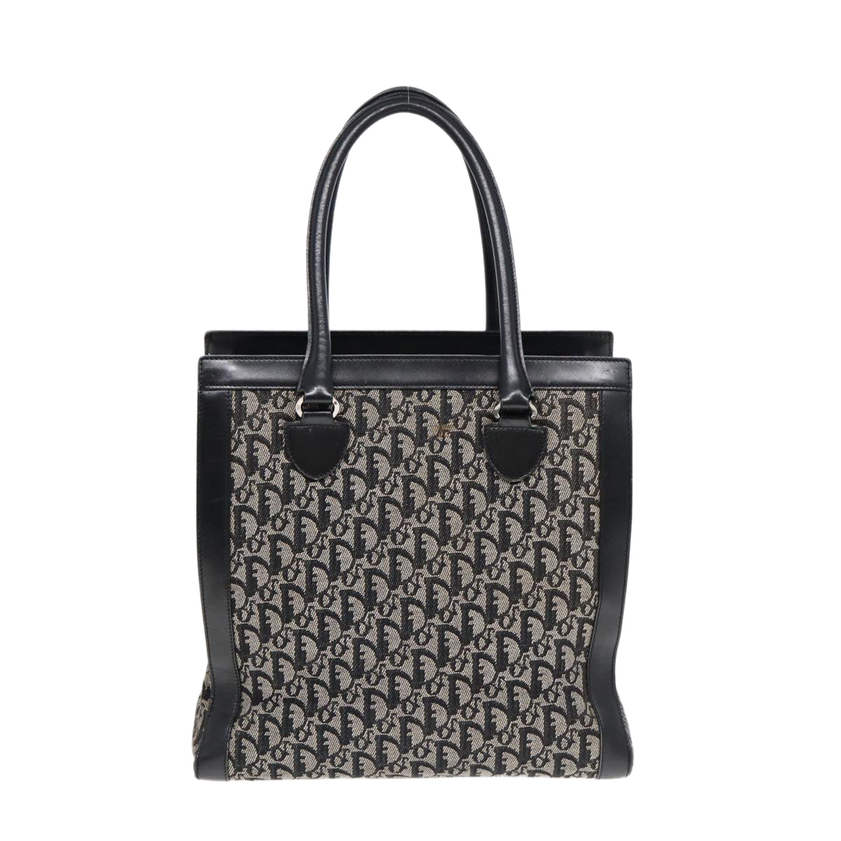 CHRISTIAN DIOR Trotter Canvas Tote Bag Black Auth 88433
