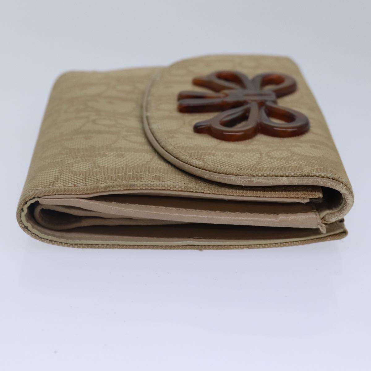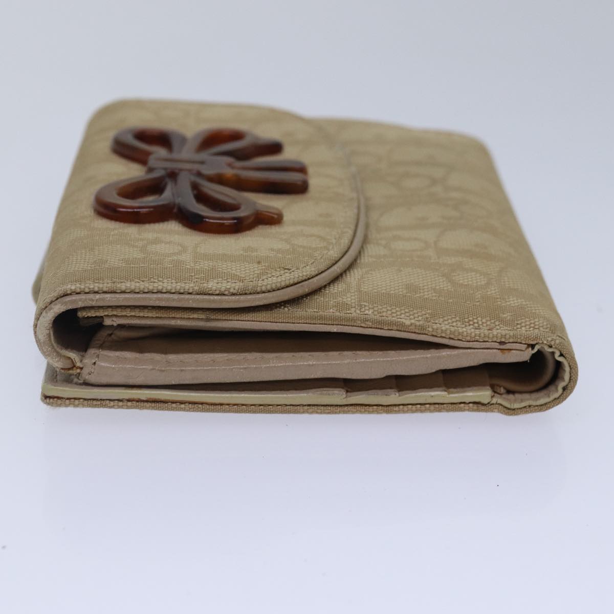 CHRISTIAN DIOR Trotter Canvas Wallet Beige Silver Auth ac3225