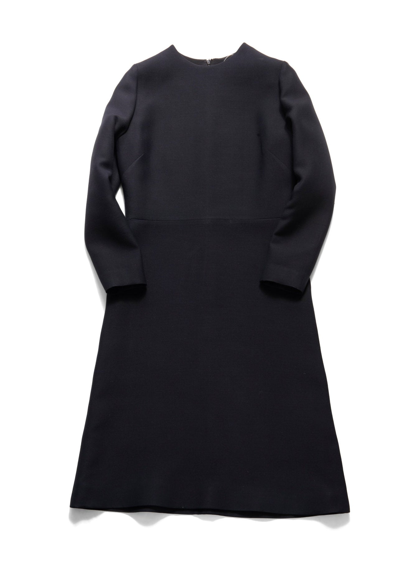 Christian Dior Dress or . This Christian Dior dress is crafted in black wool and silk fabric blend with silk lining. It features a fitted silhouette, back zippered closure and rounded neckline.
