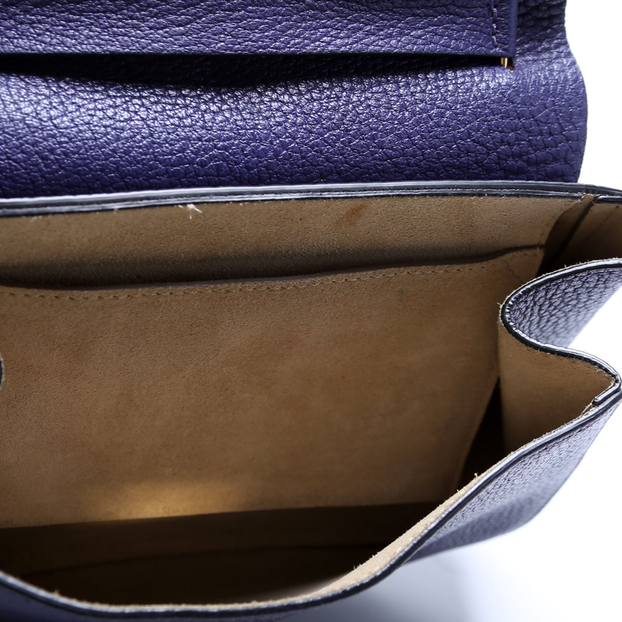 Interior: The interior shows light wear throughout. The interior features one open pocket. The interior has minor stains throughout.