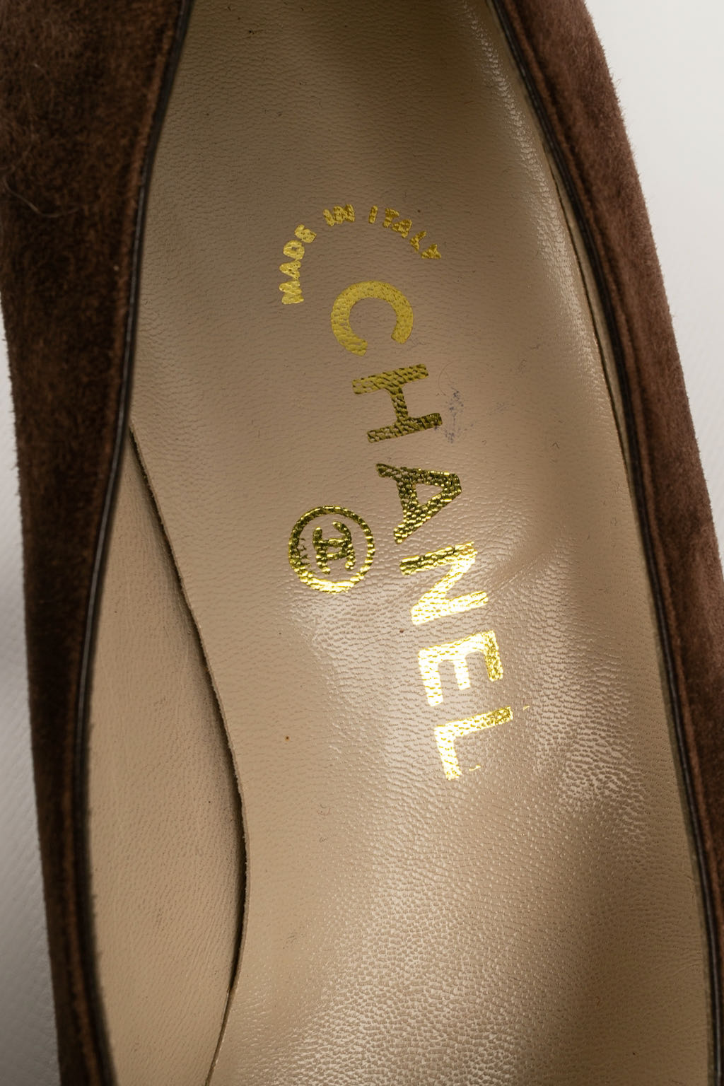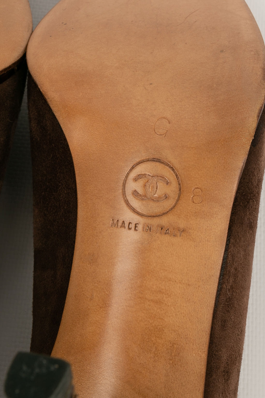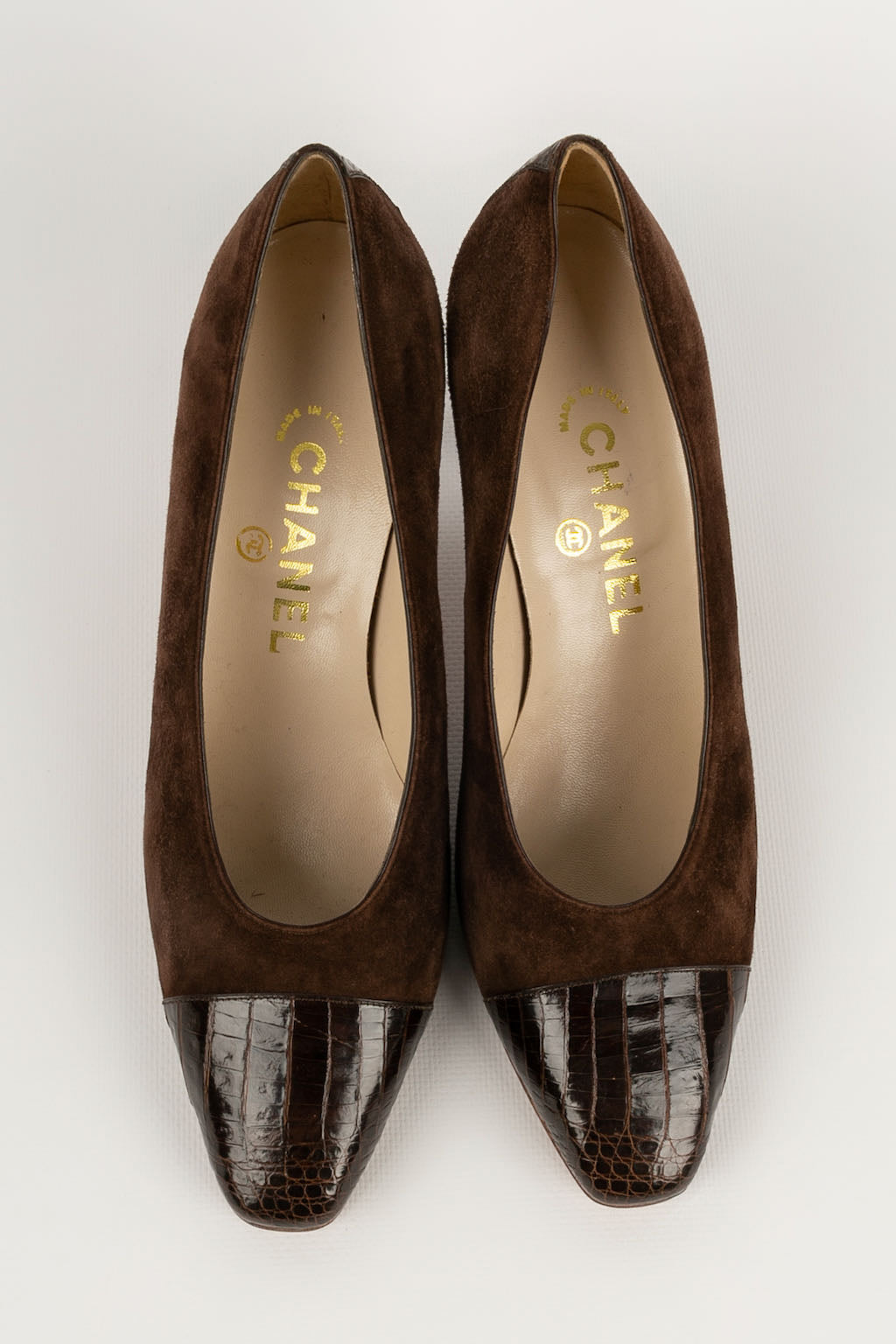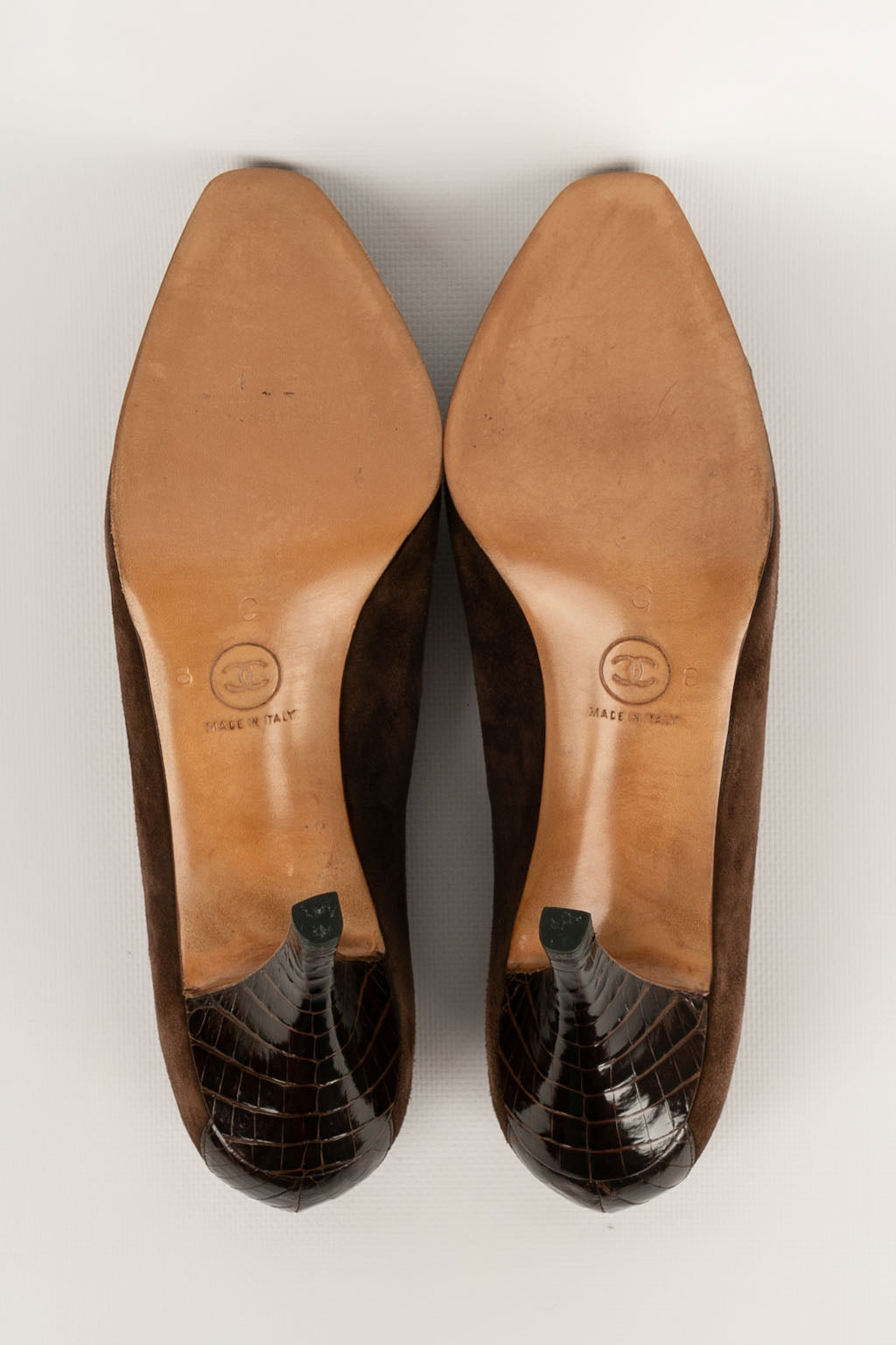 CHANEL -(Made in Italy) Escarpins en cuir et daim marron. Pointure 8US, ils conviennent à un 37.