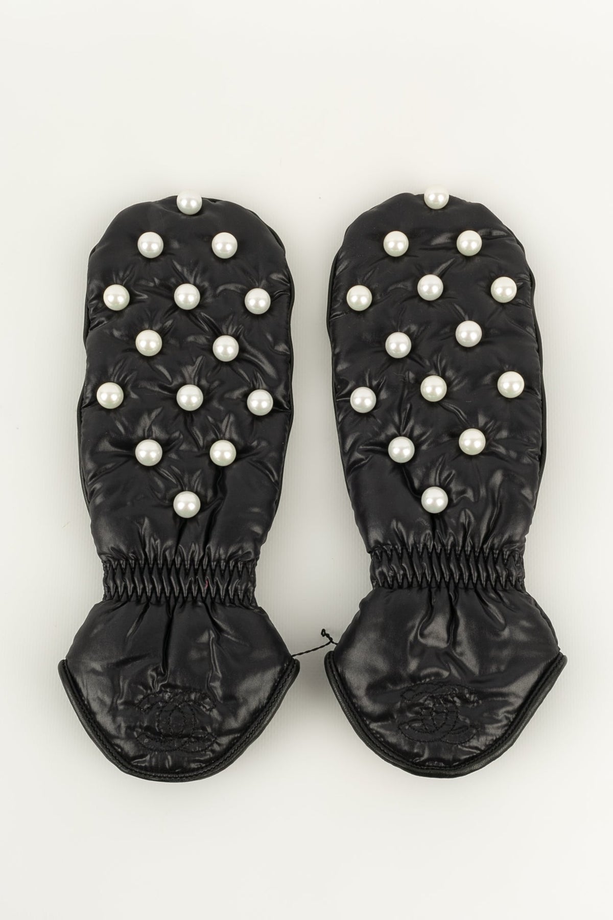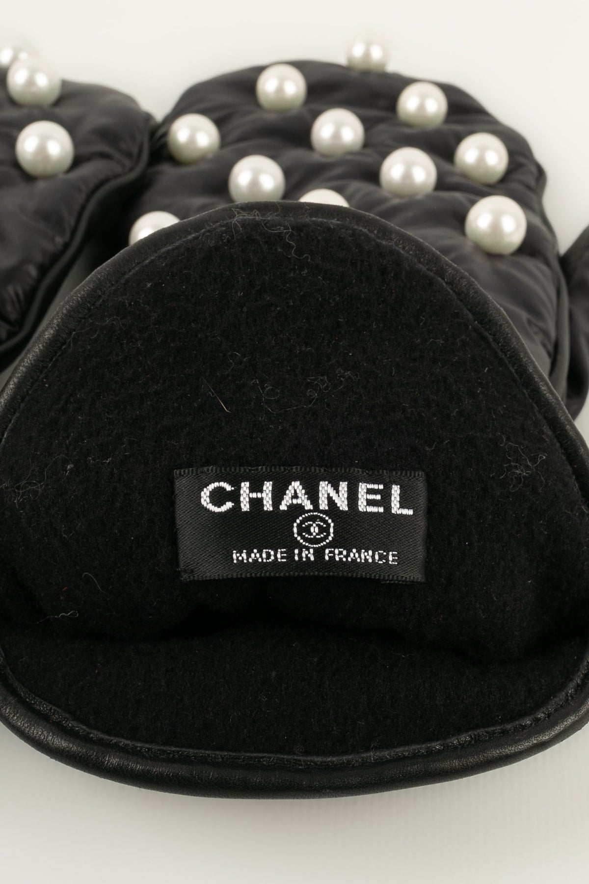 CHANEL - (Made in France) Gants en agneau dans les tons de bleu marine très foncé.