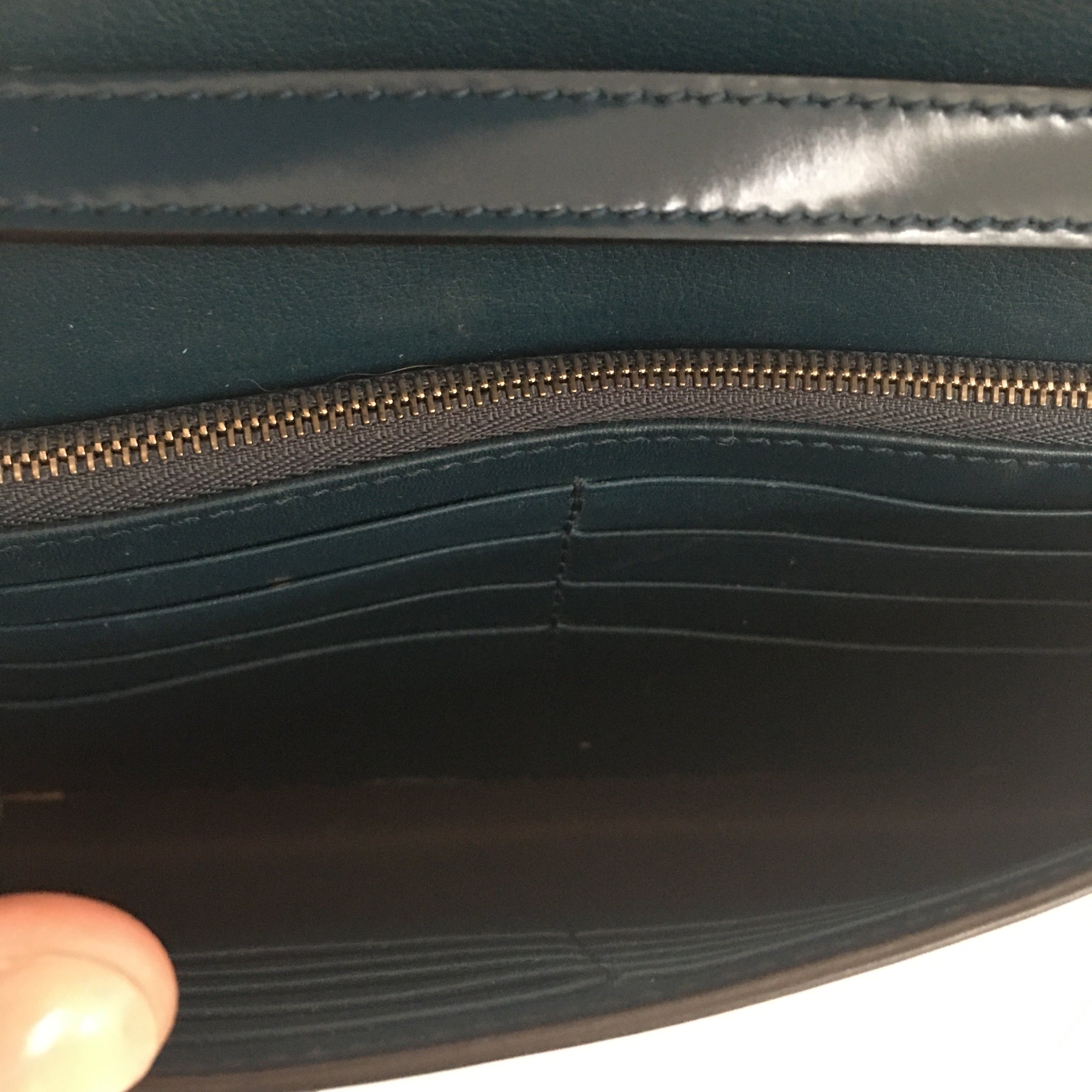 Internally, the wallet has many card slots (18) and a large zippered pocket