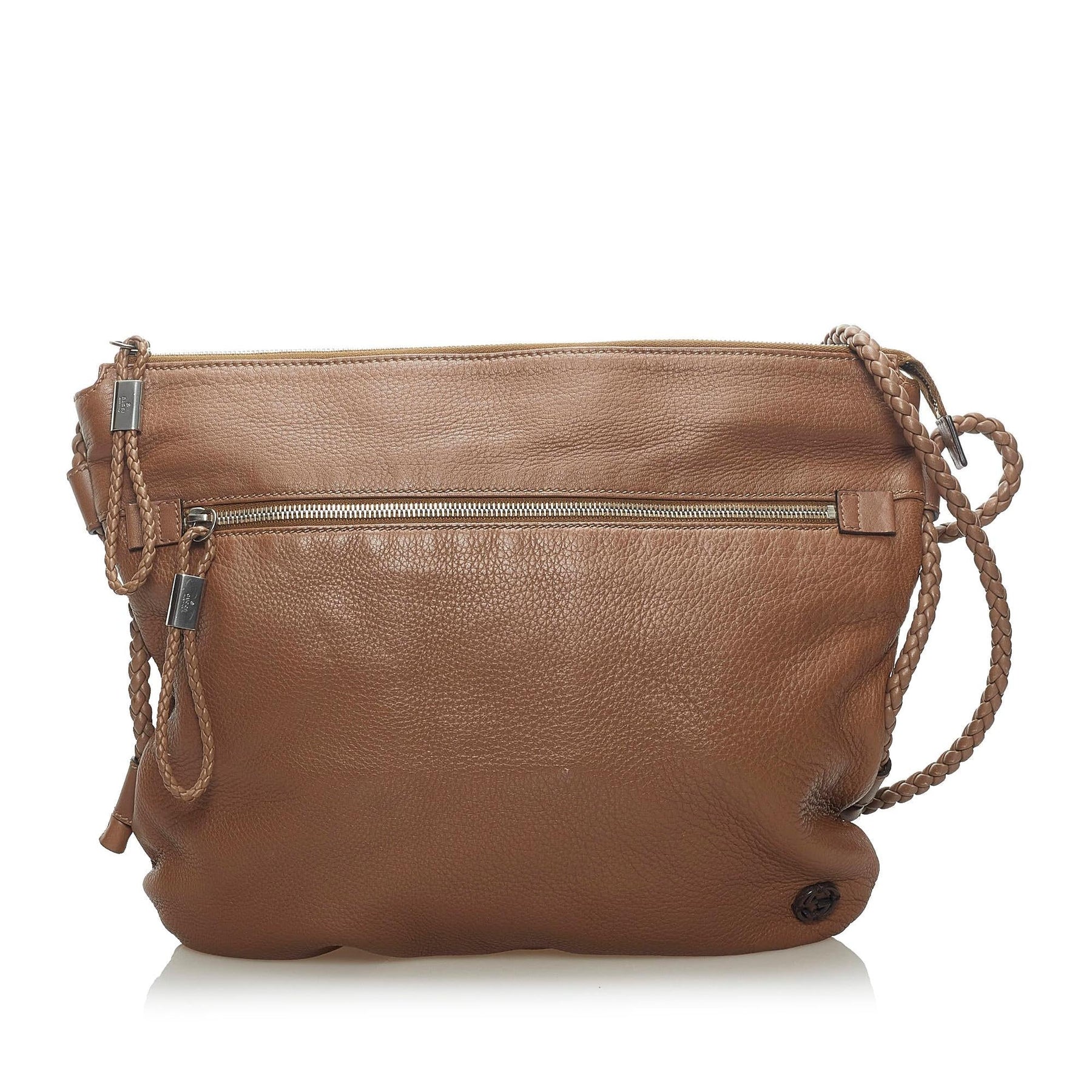 Gucci Double G Braided Strap Leather Crossbody Bag (SHG-deDhdC)
