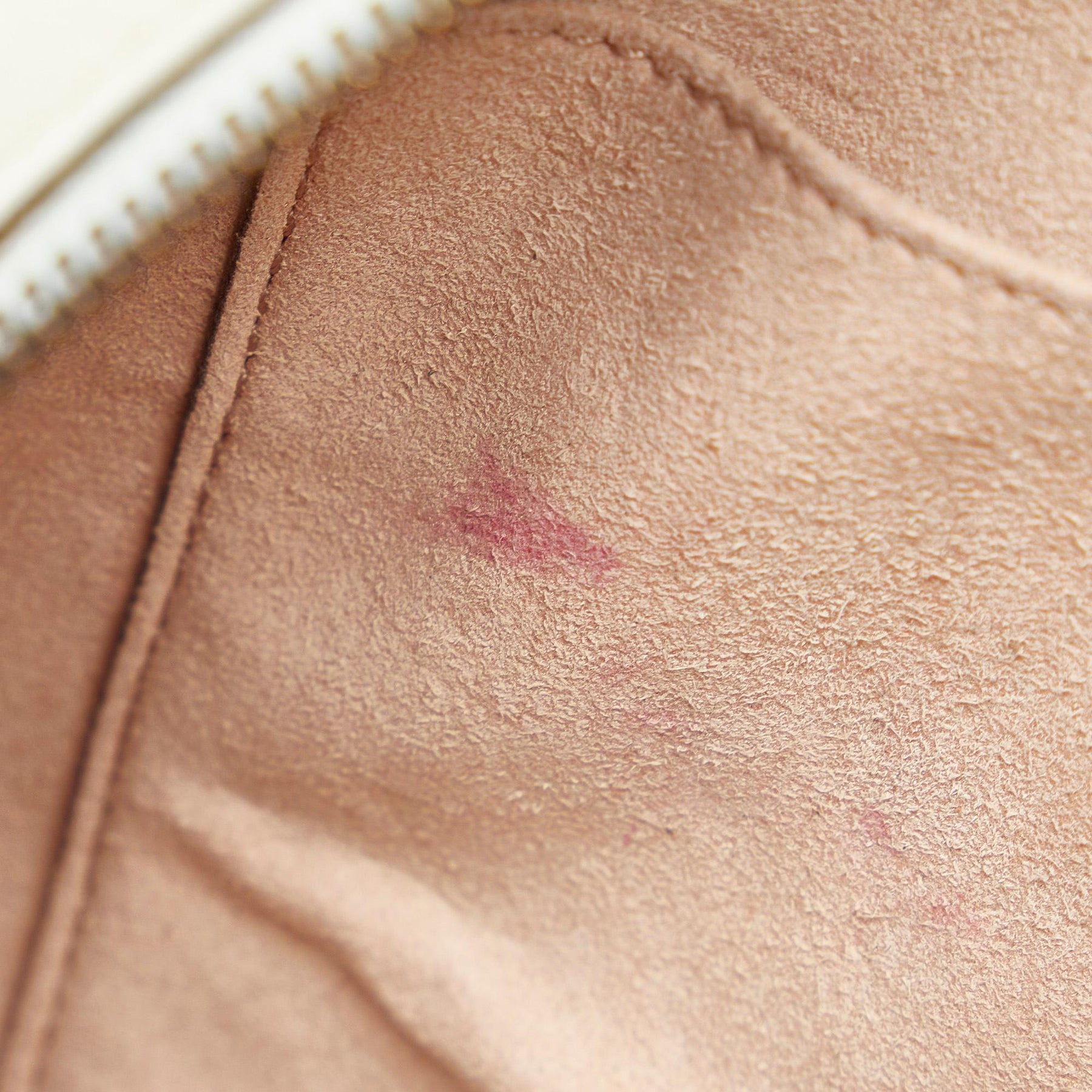 Condition Notes: Exterior Bottom stained with Other. Exterior Handle Cracked, Out Of Shape, Worn. Exterior Corners Worn. Exterior Side stained with Other. Exterior Top stained with Other. Interior Lining stained with Other. Embellishment Scratched.