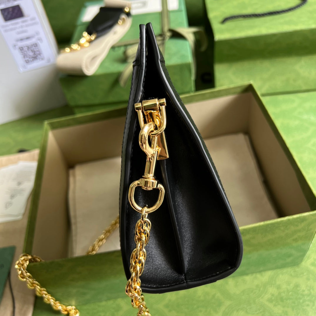 Matelassé leather continues to come to the fore of the Creative Director's designs in new and unique ways each season. With a super soft finish, the signature material is reimagined once again as a part of Gucci Love Parade with a textured geometric motif. The design presents a contemporary approach to the '90s logo trend that appears throughout the House's latest collections. Here, the material defines a slimline, structured shoulder bag in black.